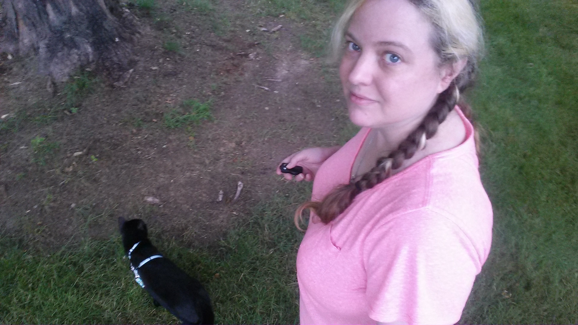 We had approached the 45-minute mark of our adventurous walk around the grounds. Gus was still in the mood for some real kickass action. I was ready to go back inside to the air conditioning. It was getting late. Like after 7PM (yeah yeah I’m an old fart). Since Gus lead me to the main entrance we use for the detective agency on the side of the main house, I thought maybe it was time to go in and relax. Instead, he checked out the new sunflower stalks and turned back around.