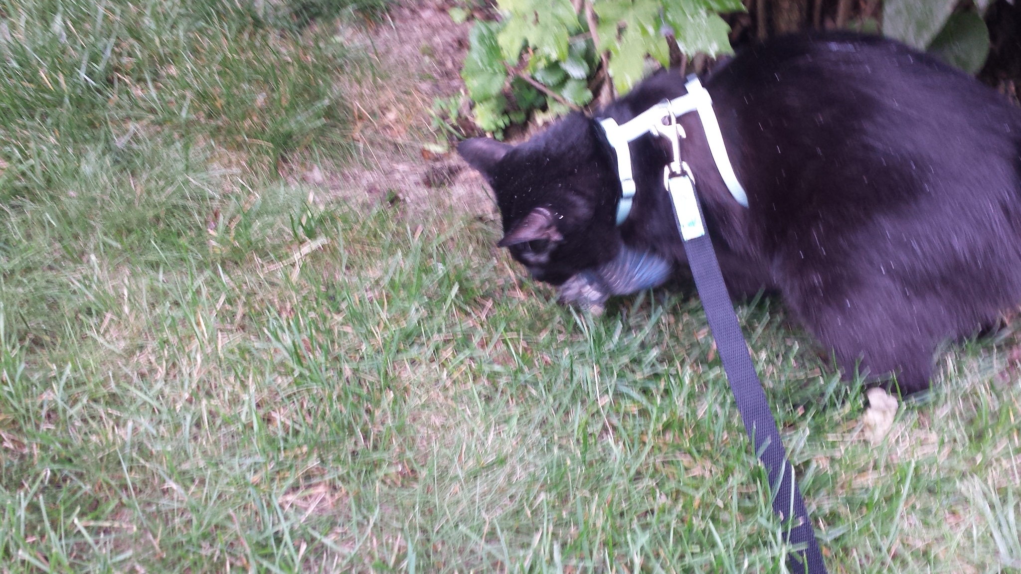 DI Guster Nabu continued this week with checking the usual spots for bunnies. Several times he went back to confirm that the freeloading baby bunnies were no longer behind the workshop at the border of Bunny Hollow. It makes me sad, because I loved having baby bunnies there. Gus has decided to not only chase free-roaming cats of the neighborhood from the estate, but also basically anything that moves.