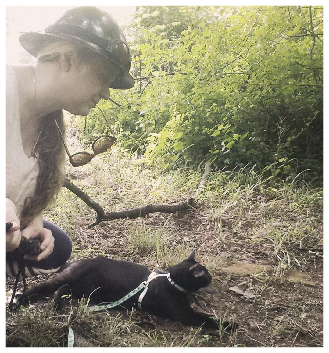There are four known stray or free-roaming cats that come through the estate (DLH black, DLH calico, grey tabby, orange tabby). I wanted a moat with a bridge or two. Request denied. Gus divides his outside time tracking visitors of the feline and non-feline varieties. The only time I witnessed him turn tail was upon hearing the loud, aggressive huffs of the whitetail mother who probably had her two or three fawns hidden by the bushes. He still tries to actively pursue birds and rabbits though.