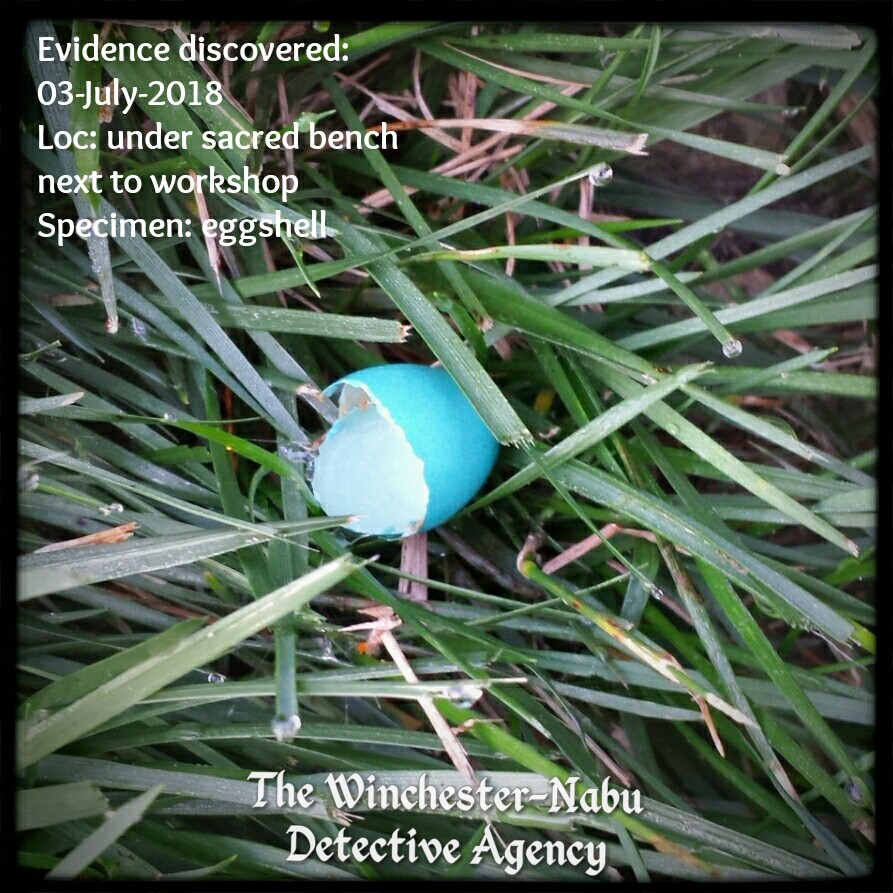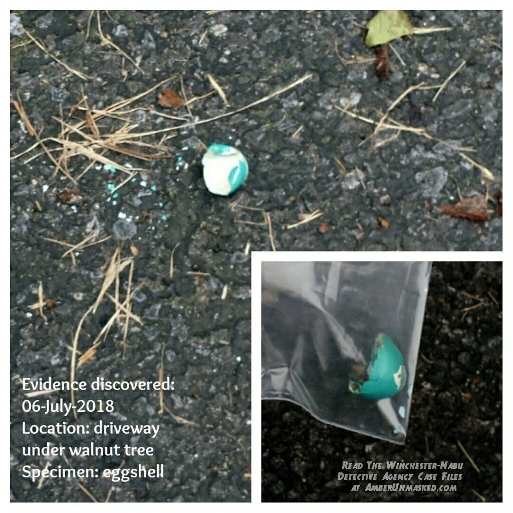 It stands to reason that blue eggshells found near the Fairy Garden would possibly belong to the blue fairy located there. However, the second eggshell specimen was found way on the opposite side of the property. Of course the fairies must travel around. They have lives after all. They’re not confined to the garden.