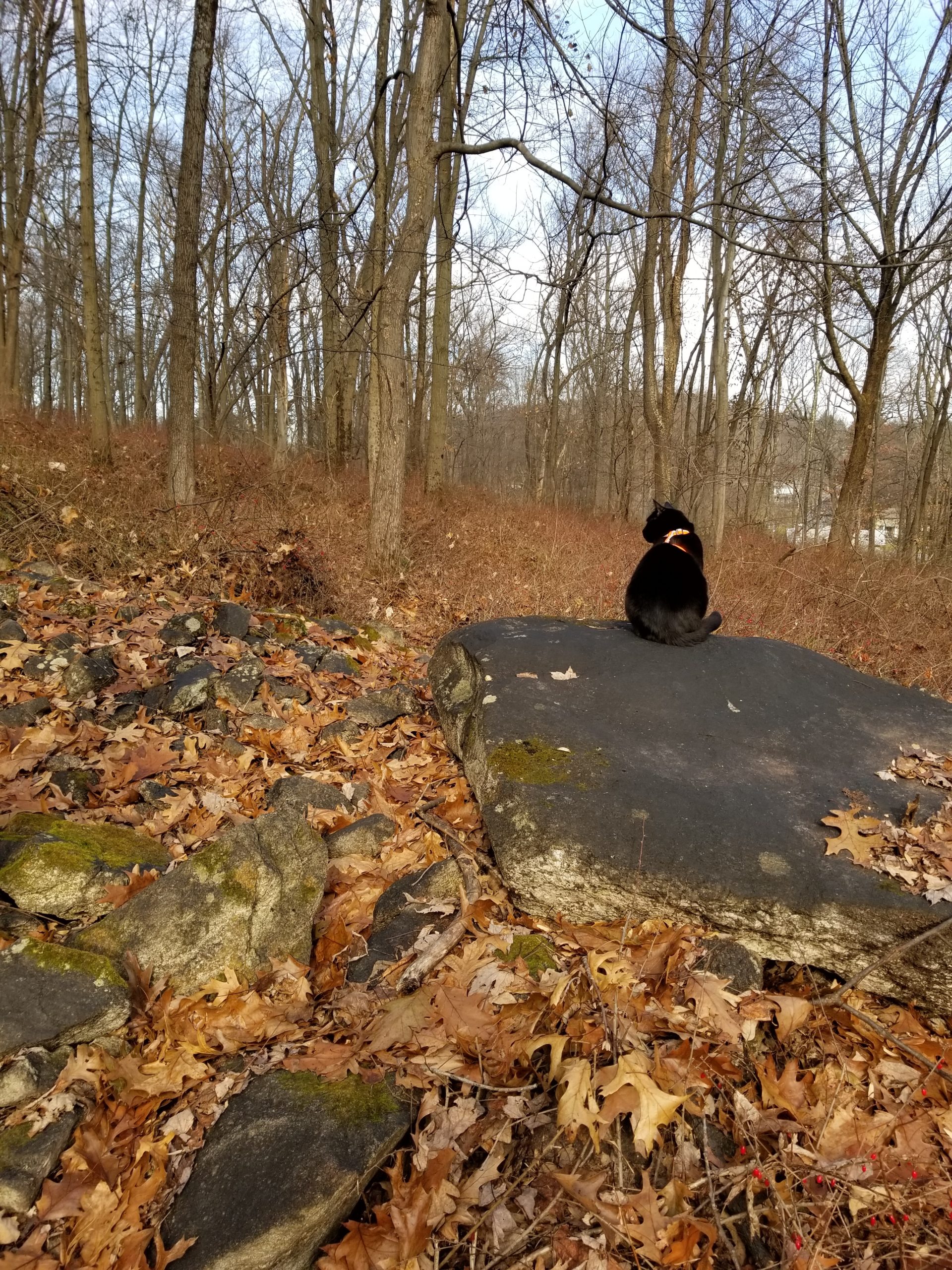 For a couple of years, I’ve wanted to uncover a particular boulder in the backyard, mainly because of walking with Gus on our adventures. A few months ago, my mother said that boulder and the whole area of rocks were open and she remembered being able to sit on them. That made my decision for me. Besides climbing trees, Gus absolutely loves climbing on rocks.
