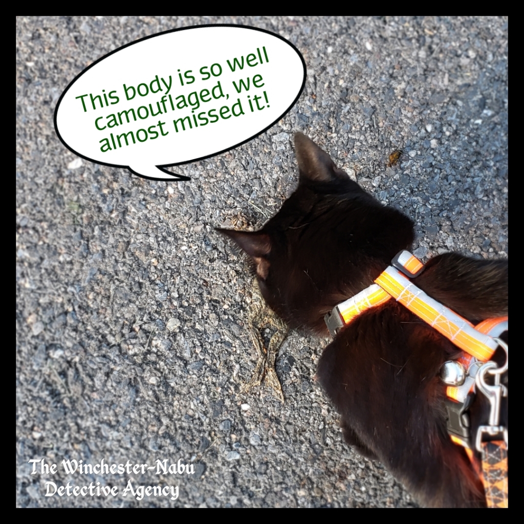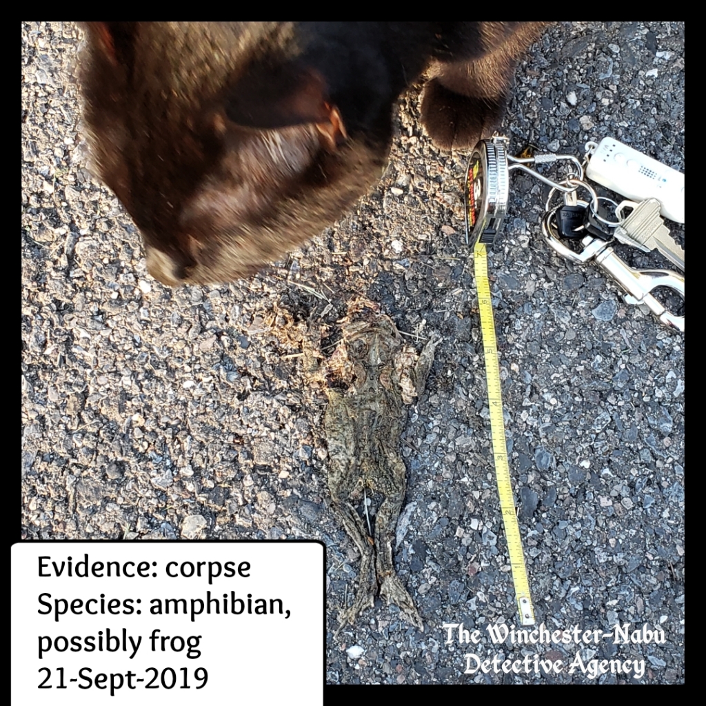 We have to be vigilant in our observations and check in with our CIs to see if we can determine the cause of death of the toad in the road and then determine if it is a criminal matter. Oliver and Gus believe we are most likely dealing with something of a supernatural case rather than an earthly predator-prey killing.