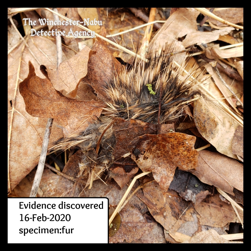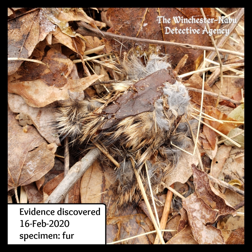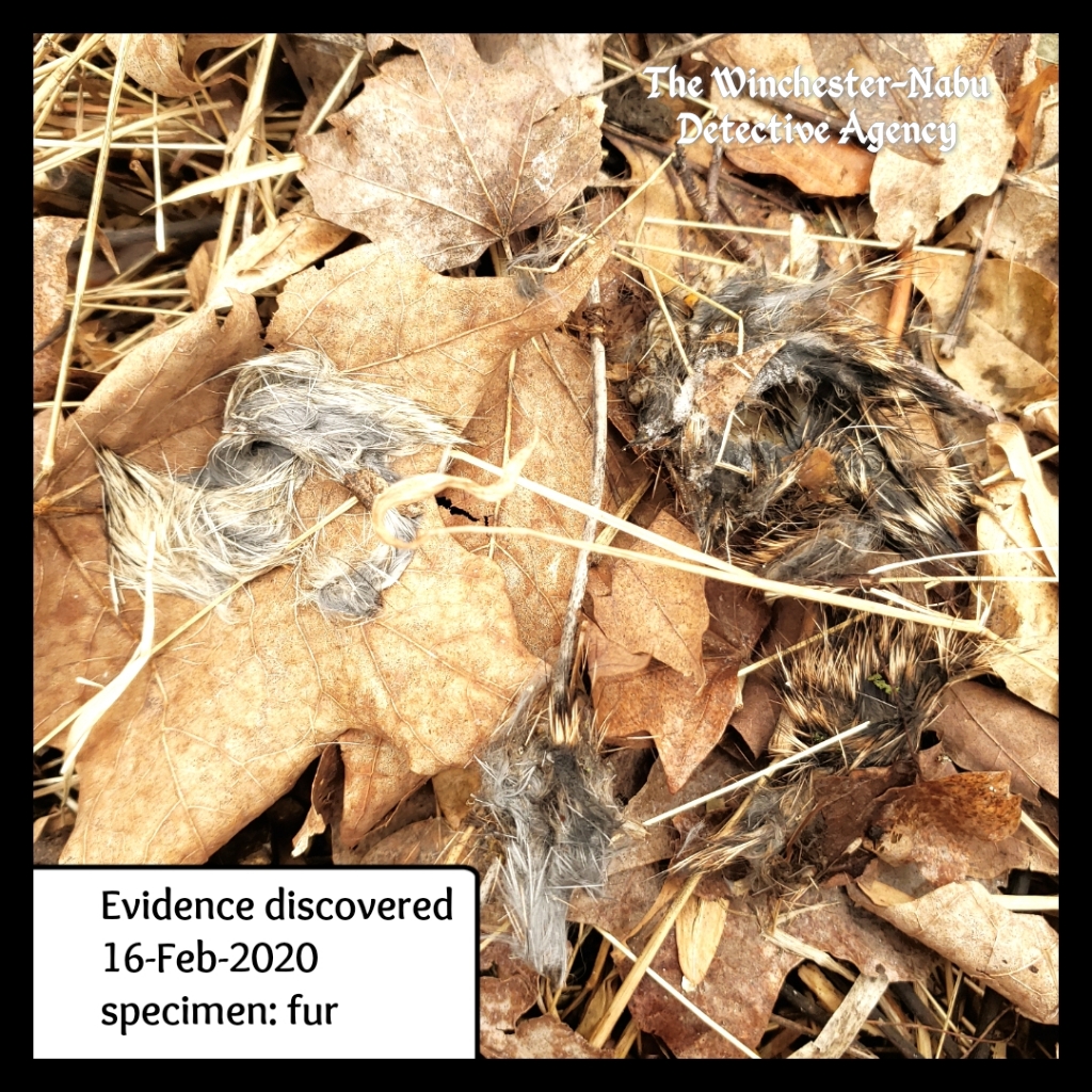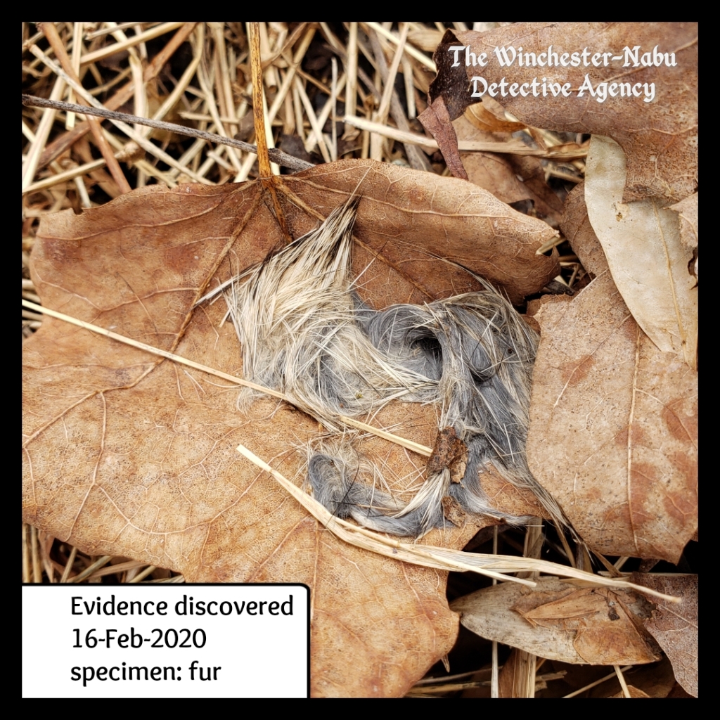 No eyewitness and very little evidence found. This was going to be a tough case to crack. Oliver sent the hair samples for analysis and it was not a maging. It was one of our local squirrels. We don’t have the sort of labs to determine much more information than that.
