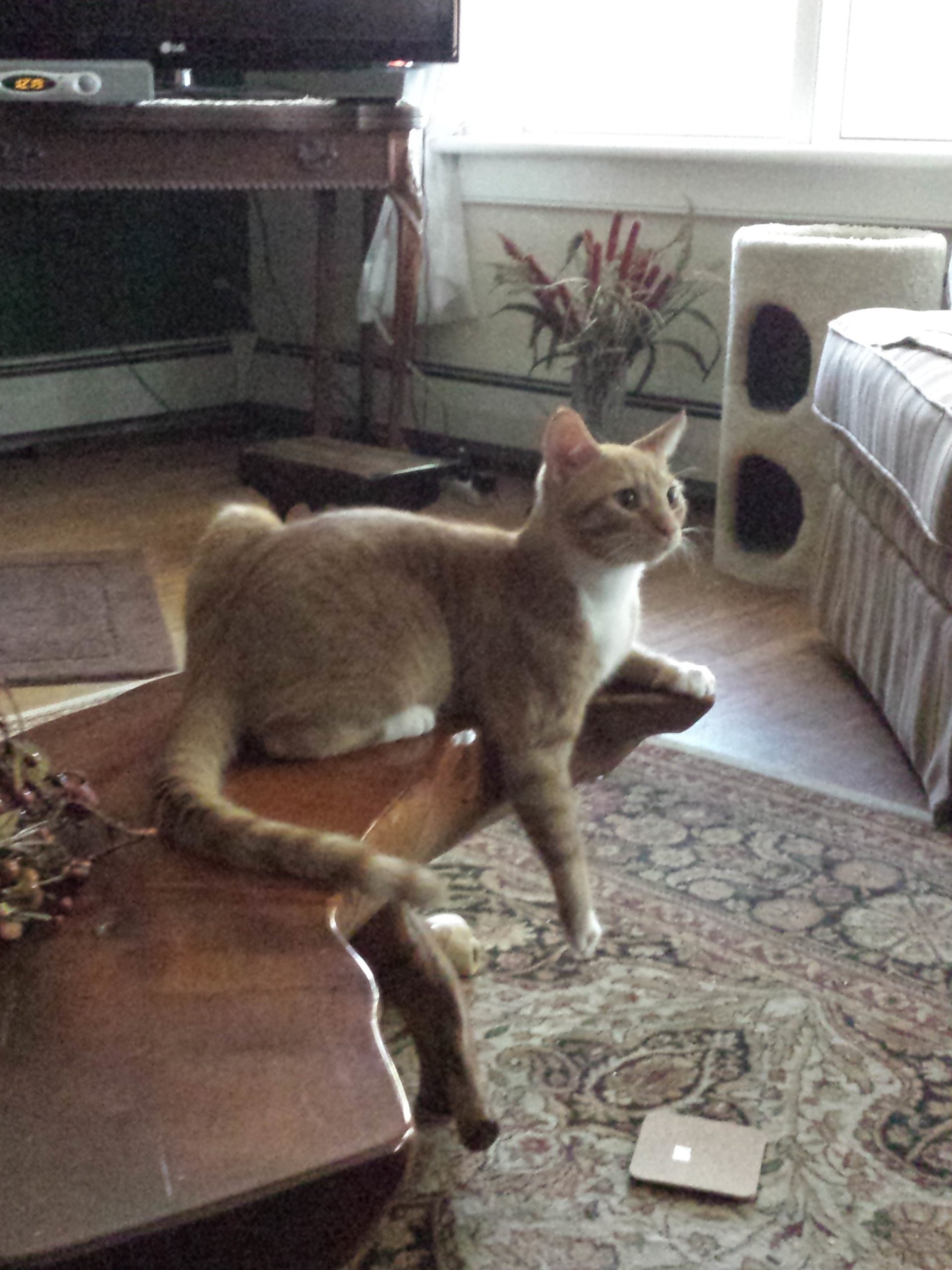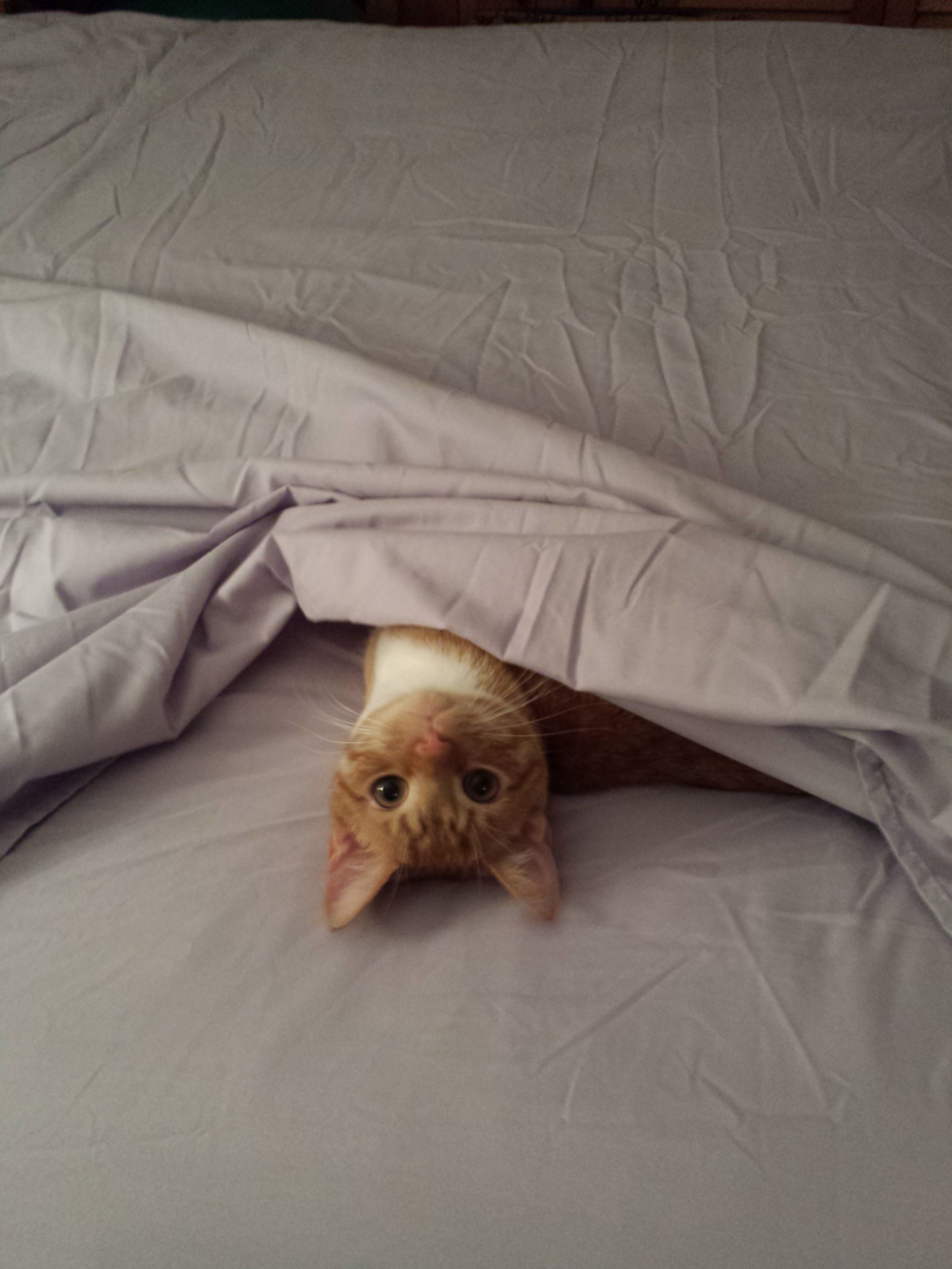 Oliver loves men, even strangers. He’ll greet them when they enter and want to run on their ankles. Sometimes even allowing these strangers to give pets. But he’s still a “momma’s boy” when it comes to The Cook, his favorite human. He’s recently starting napping on the Grumpy Old Man’s lap and wants to be covered in an afghan completely as a lump.