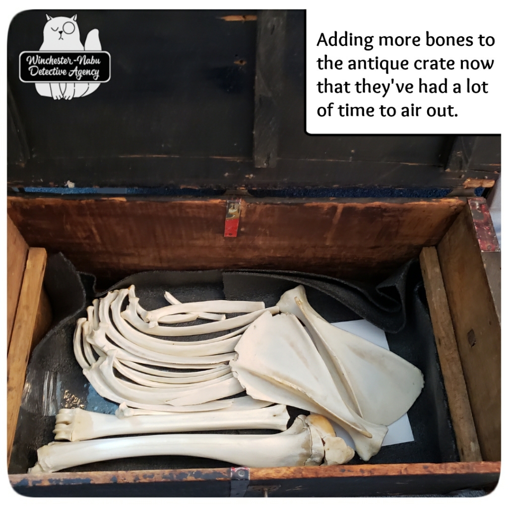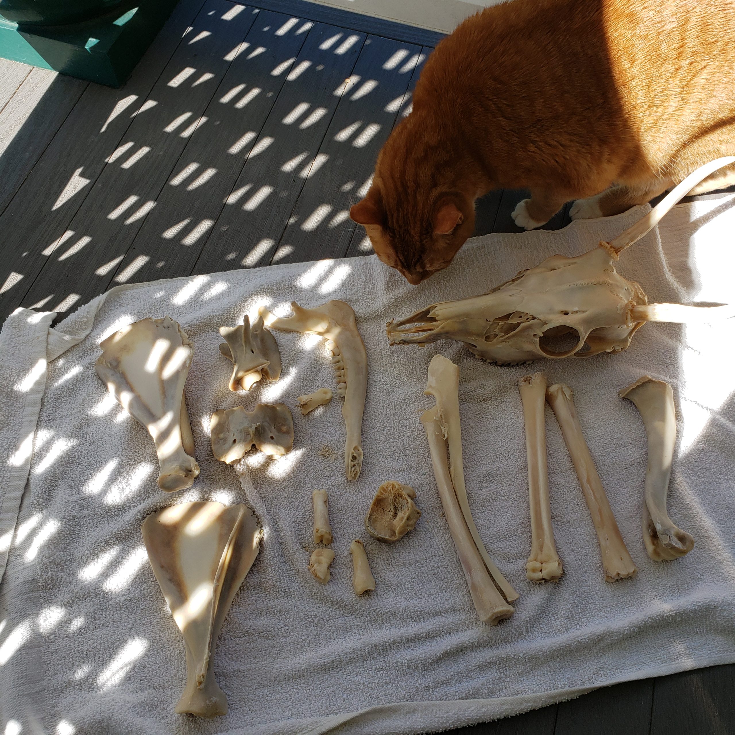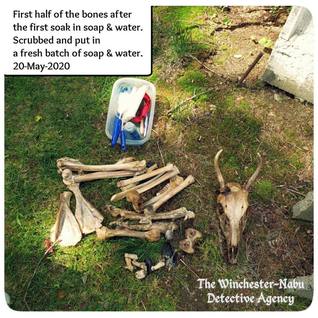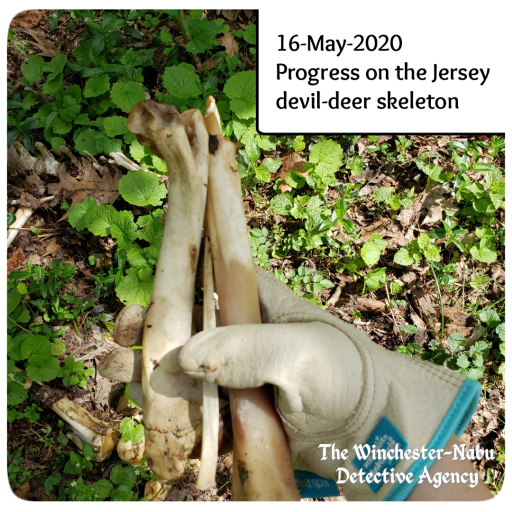 It’s time for a cumulative progress report on the Jersey devil-deer skeleton cleaning. I made videos of the first batch particularly to explain step-by-step how those bones were cleaned.