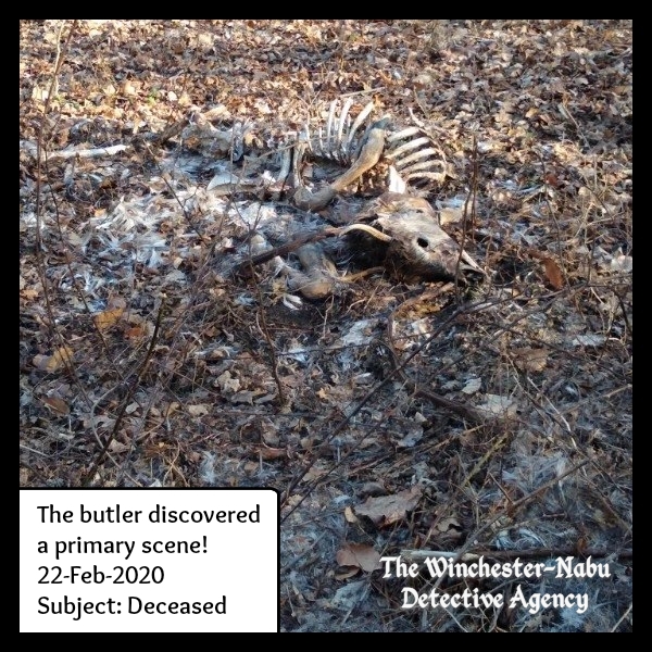 - The corpse was found in the woods not easily accessible and not close to the house. We moved it over to a more accessible area and closer to our house. Gus, Oliver, and I declared that it was a wingless breed of the hybrid called the Jersey devil-deer which is the Jersey devil or demon bred with the common whitetailed deer.