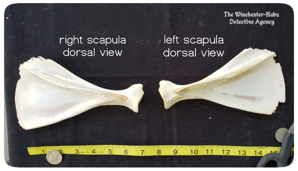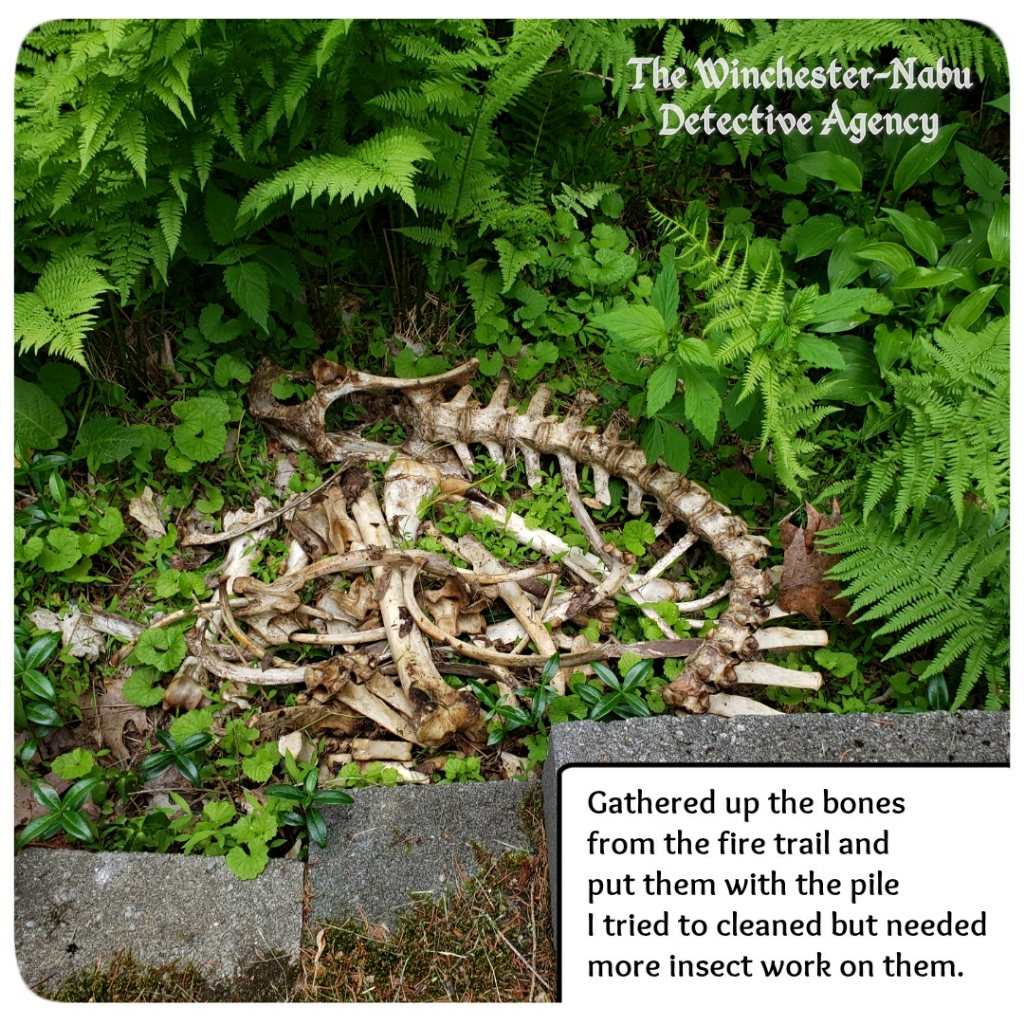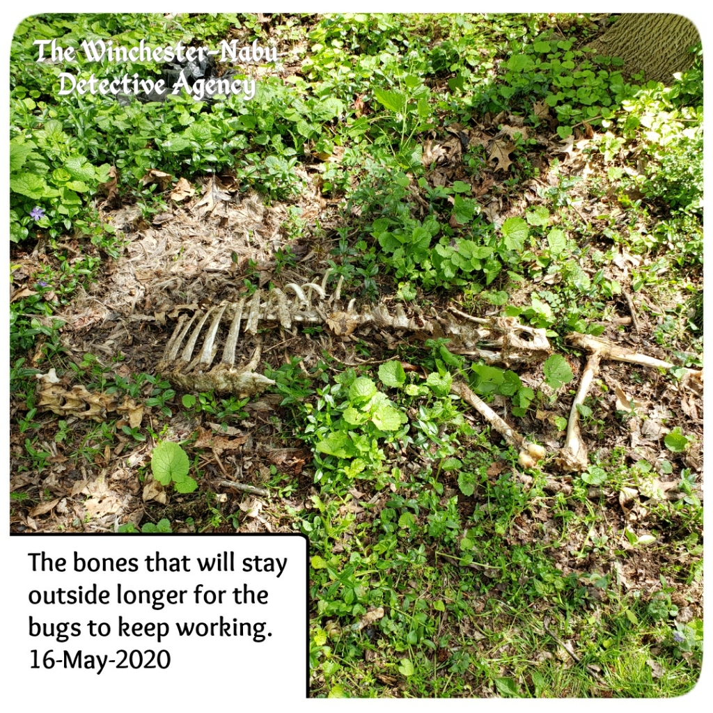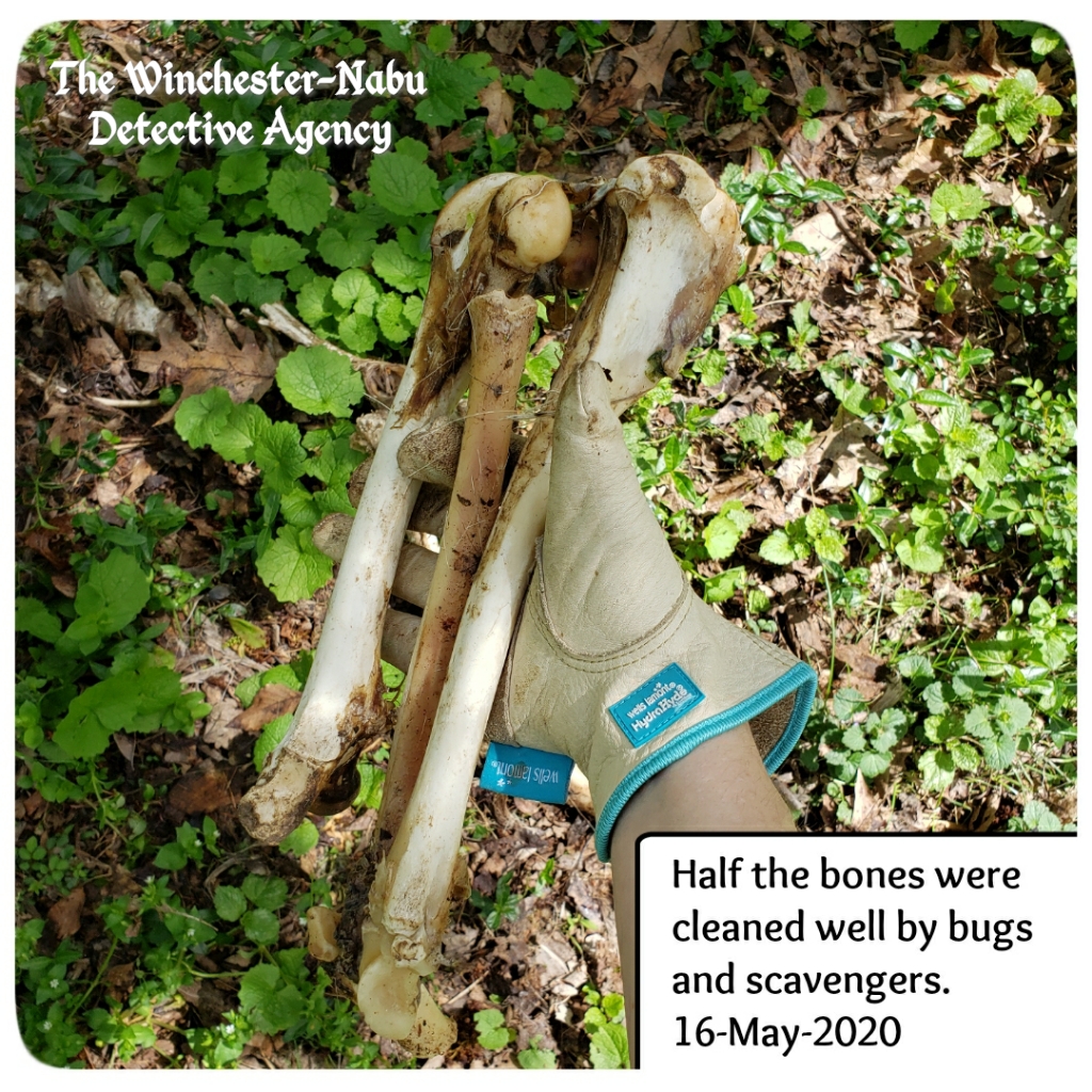 During this entire discovery and cleaning, I didn’t have a clear cause of death. During the body farm stage, I tried my best to examine the bones periodically to look for breakages or injuries. I didn’t see any obvious ones until the bones were picked quite clean. I think the scavengers were responsible for those breaks and it was probably from trying to pull the carcass apart and out of the chicken wire. Therefore it’s still not clear if it was a vehicle accident or a hunting victim. There was no arrow found nearby, but there was a shell found on a trail months later.