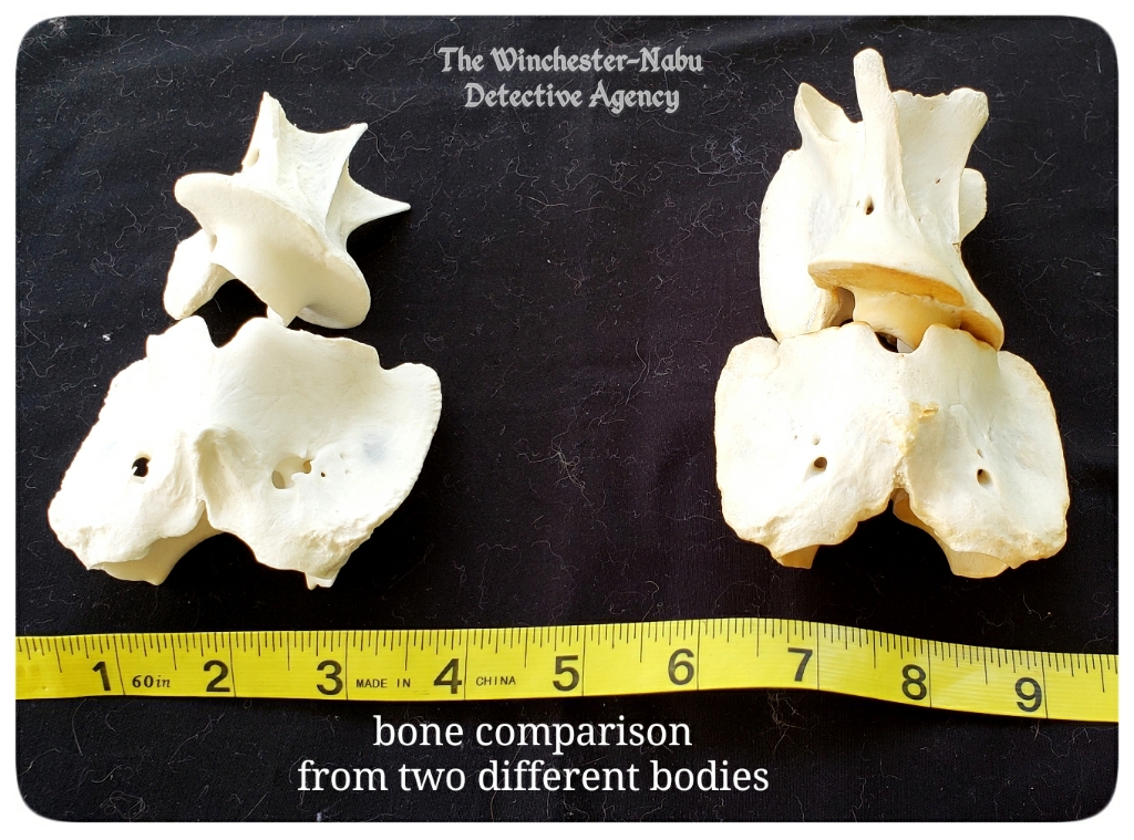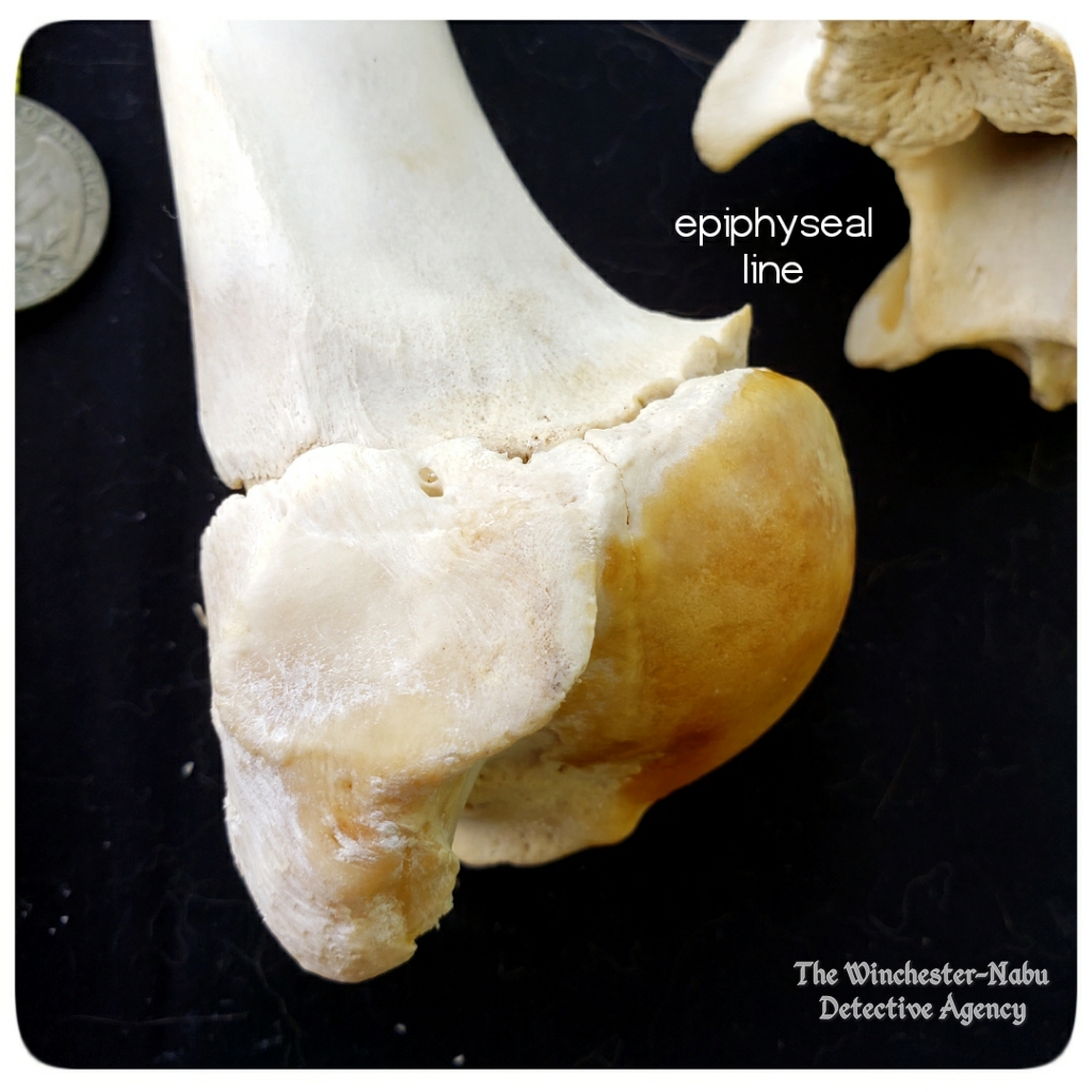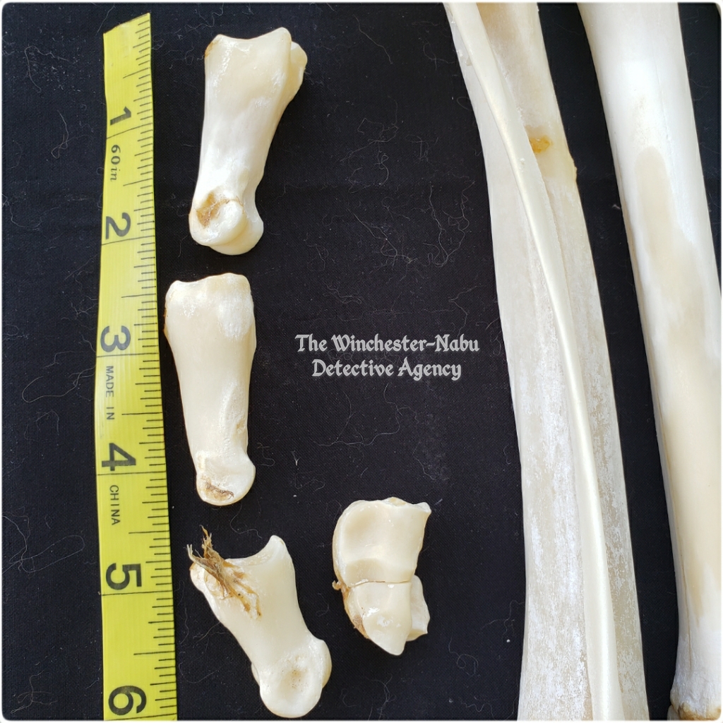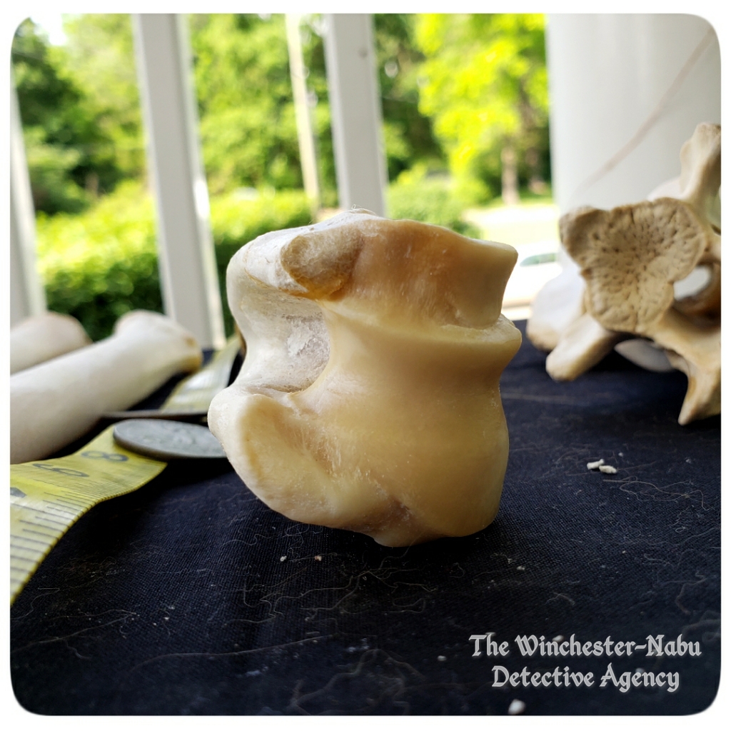 In the videos there are some interesting comparisons of note. There are vertebrae I purchased compared to the vertebrae of this specimen showing a difference in their sizes and also how much whiter the purchased ones are. There is also a femur with the head still attached on the one side, but it knocked off on the other side so you can see the importance of the epiphyseal junction.