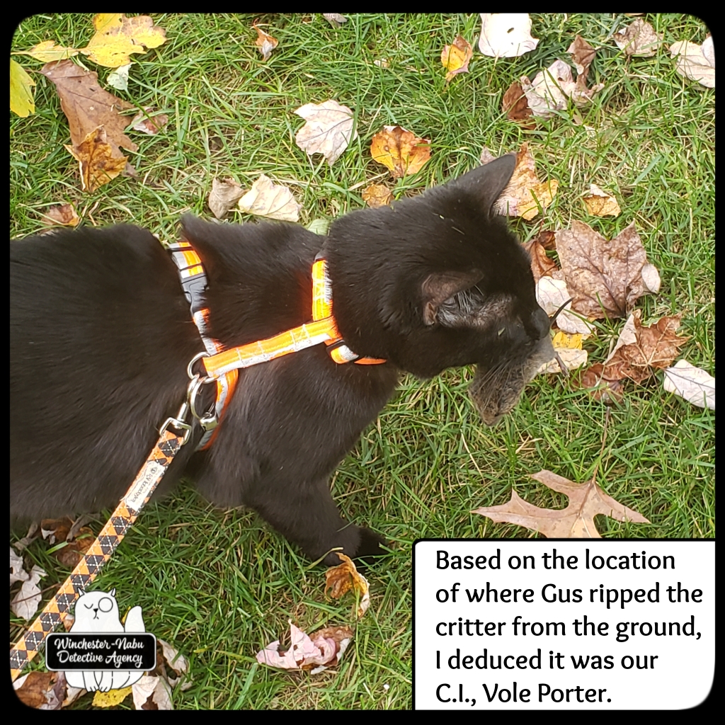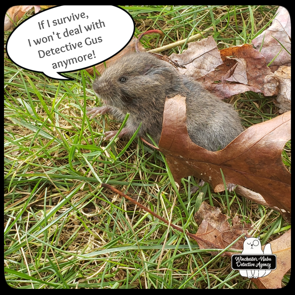 I don’t even know where to begin with this case file because it’s been a continuing saga of Gus vs. (fill in the blank). This time it was Gus against one of my favorite confidential informants, Vole Porter.