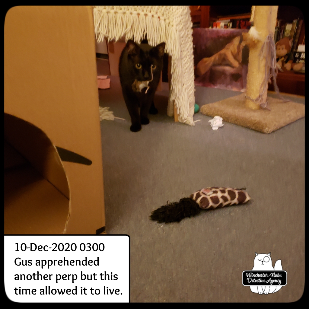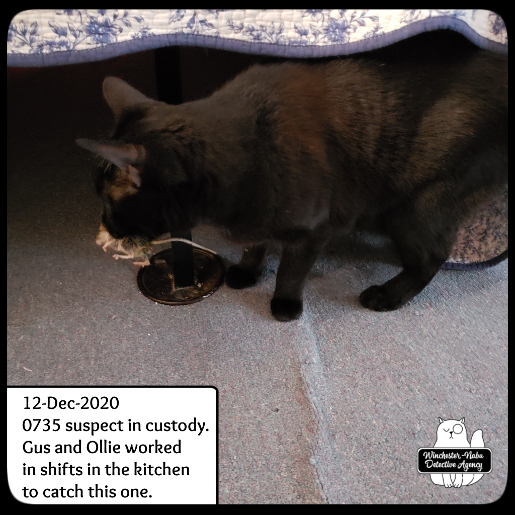 December 2020 stirred up all kinds of activity inside the Winchester-Nabu Detective Agency offices and residence. The stinkbugs were back. Noises came from nowhere. The humans kept seeing cats where there weren’t any (it’s the ghost cats). And then, there were the mice.