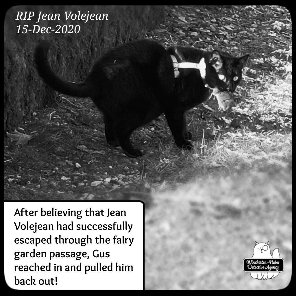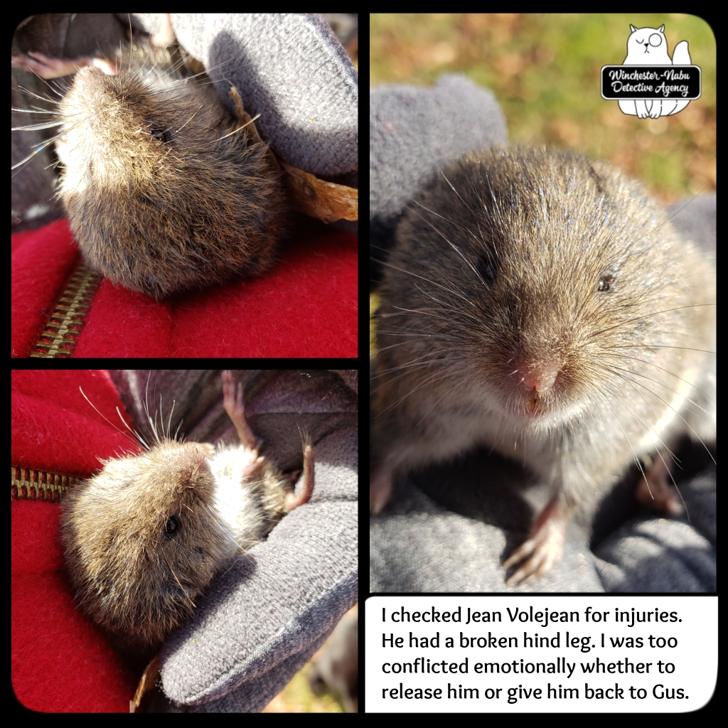 Jean Voljean must have had an incredible and noteworthy life. He was survivor. He knew how to battle against Gus, but it wasn’t enough. Even heading for secret tunnels didn’t give the brave vole the protection he needed. The Grumpy Old Man was surely happy to hear the news of another vole vanquished.