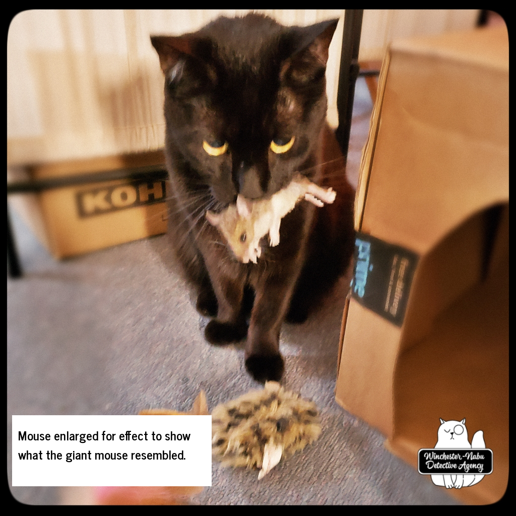 For comparison: Gus with the mouse from Dec 12, 2020 and then with the mouse enlarged to the size of what I saw January 23, 2021.