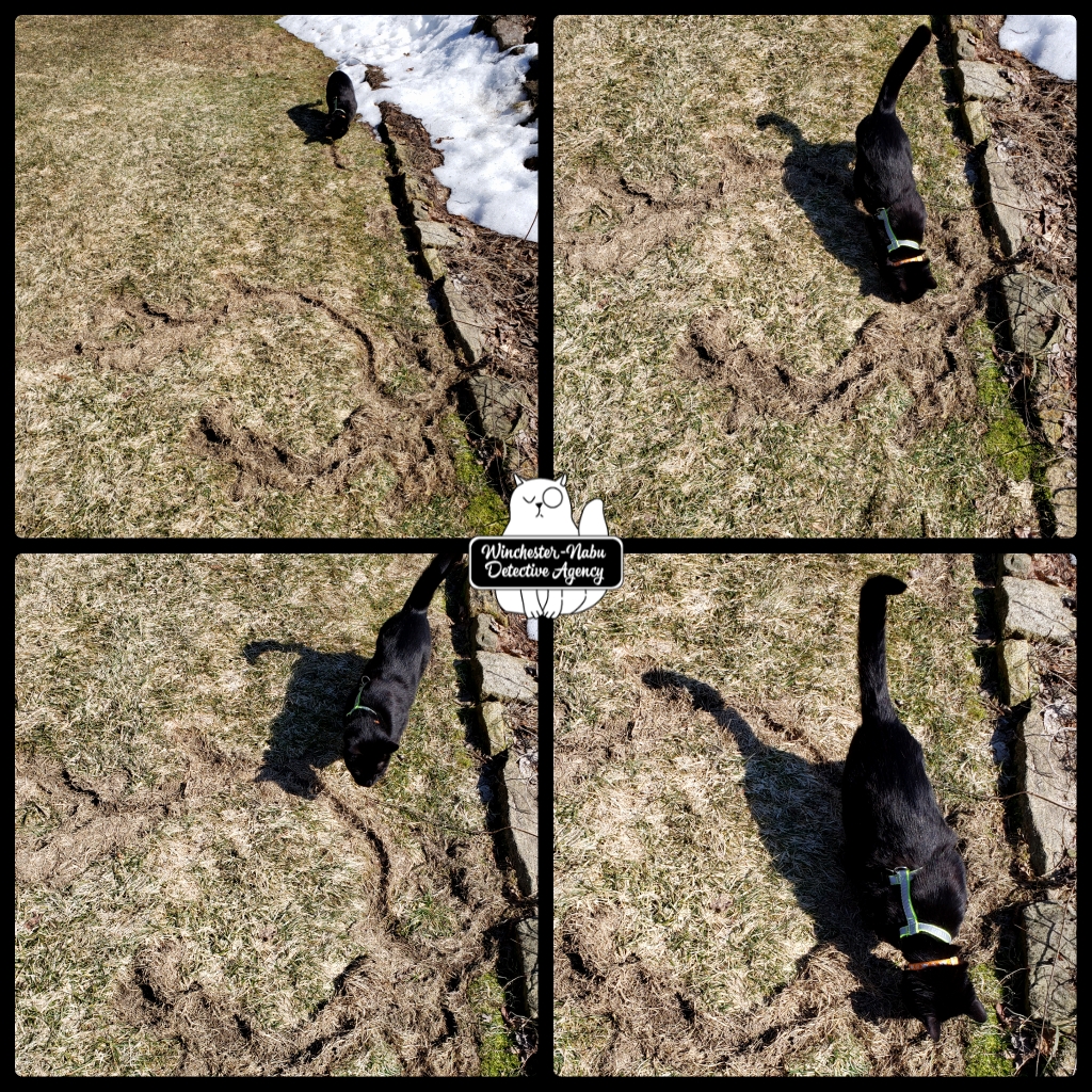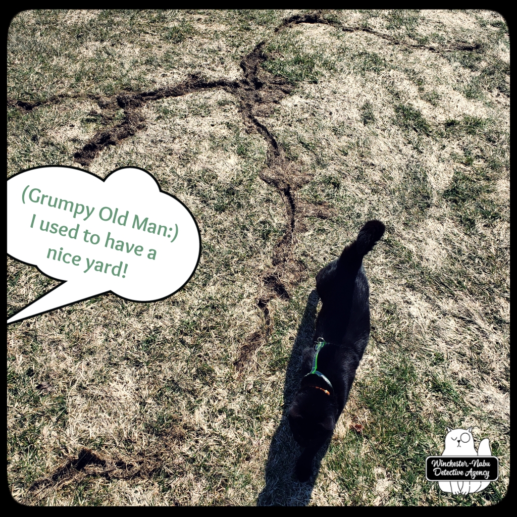 As the twenty-whatever inches of snow began to melt, Gus got more excited because he was finally able to reach parts of the estate that had been covered. We did so many patrols that consisted of going up and down the private road and thoroughly inspecting the Grumpy Old Man’s workshop. I, too, was ready to get back to our usual explorations in the trees and trails.