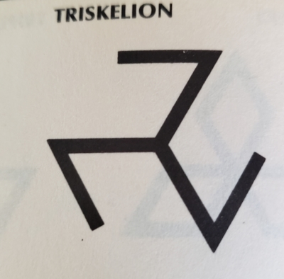 The triskelion is simply the triple-triangle form of Fate (or the Fates) with one side of each of the three triangles removed, so that a swastikalike figure results. It is one of the lively symbols, giving a distinct impression of movement. This is a basic pattern for the tryfuss, the three-armed design, and similar variants.