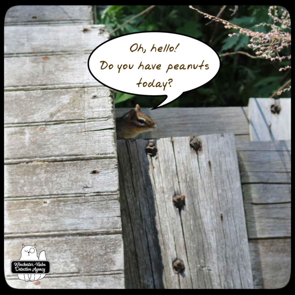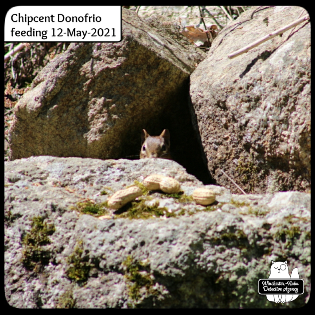 Chipcent Donofrio was the first of all the chipmunks to appear after hibernation ended in spring. He was skittish and didn’t seem to remember that we are the deliverers of peanuts and seeds. I posit that hibernation causes some amnesia, but only in memories that are superfluous. It took weeks of occasional peanut payments for Chipcent to be less scared, but he’s not going to come running and get peanuts from my hands like chipmunks on Instagram. None of our chipmunks will do that.