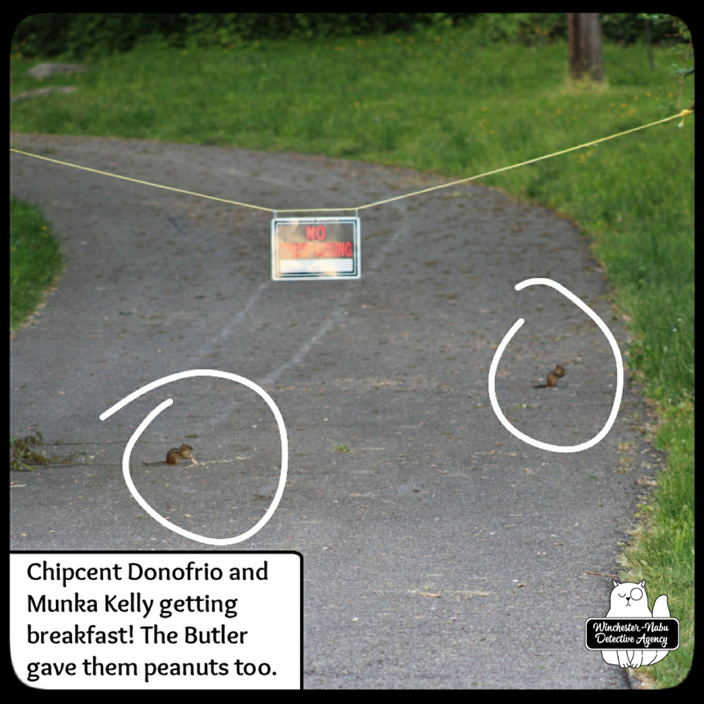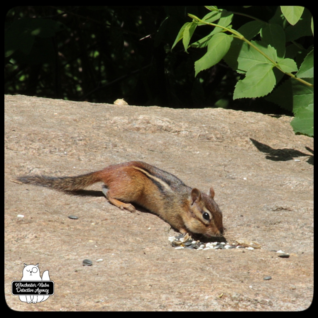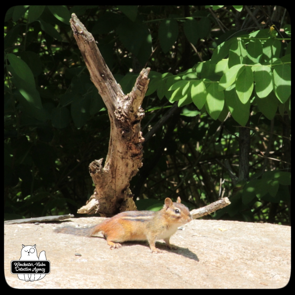 After interviewing Chipcent Donofrio, the Winchester-Nabu Detective Agency learned that there was a peaceful transition of power as Cheeks Moretti decided to retire from his lead role in the chipmunk mafia. Chipcent is partners with Munka Kelly, who is a known super spy. Cheeks continues to get his peanut deliveries even though he uses the rock fortress only as a pit stop. Phillip “Benny Squint” Lombardo is new to the neighborhood and being trained to take over for the vacancy left by Sgt. Burrows, who was killed during an incident with Gus.
