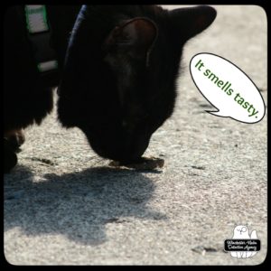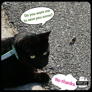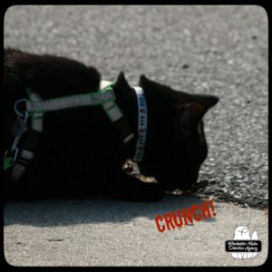 I only got as close as I needed to be in order to get a photo. Gus got intimate, right up in the hopper’s business. He smelled it, possibly licked it, and definitely crunched it.