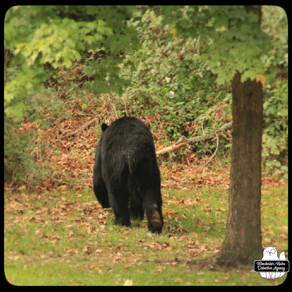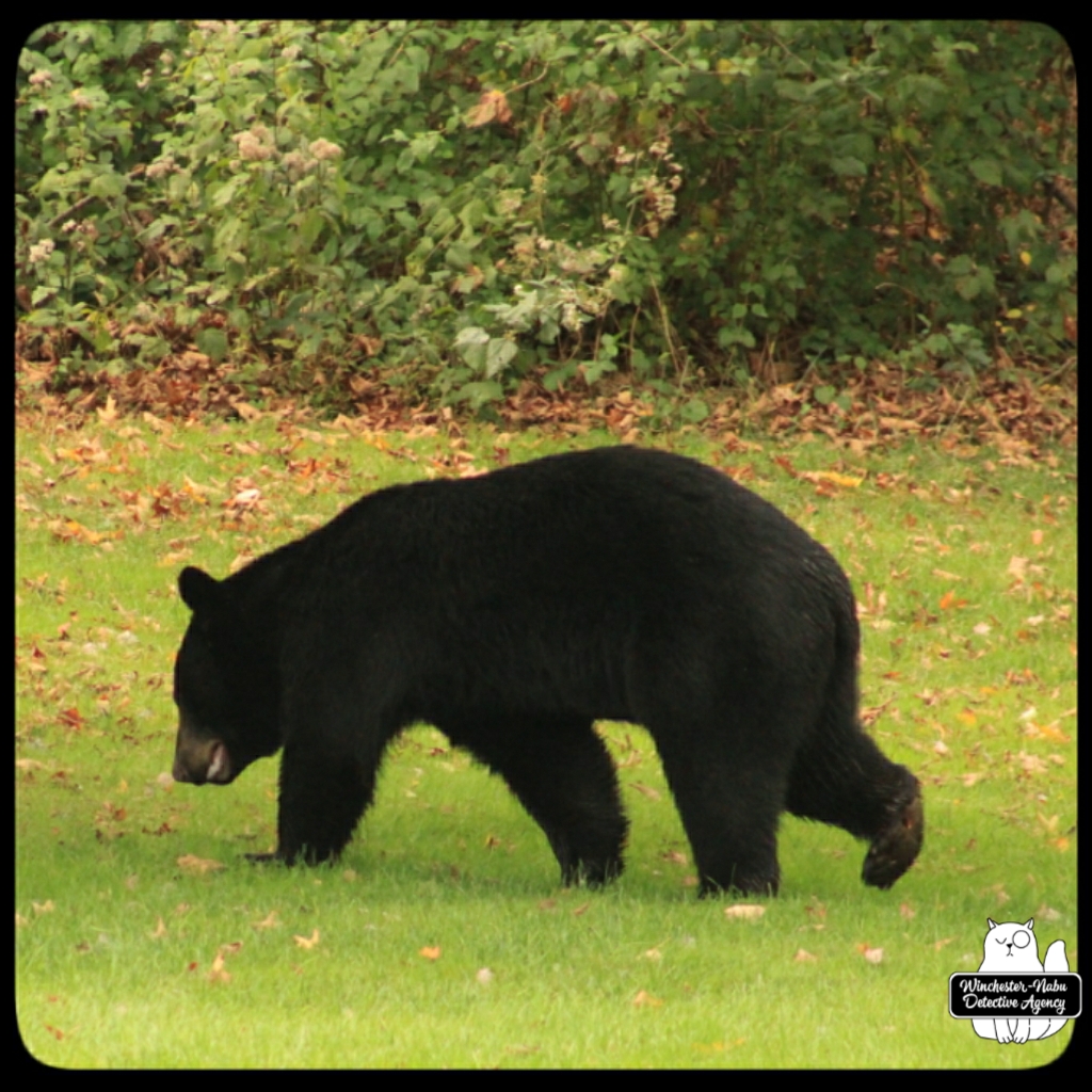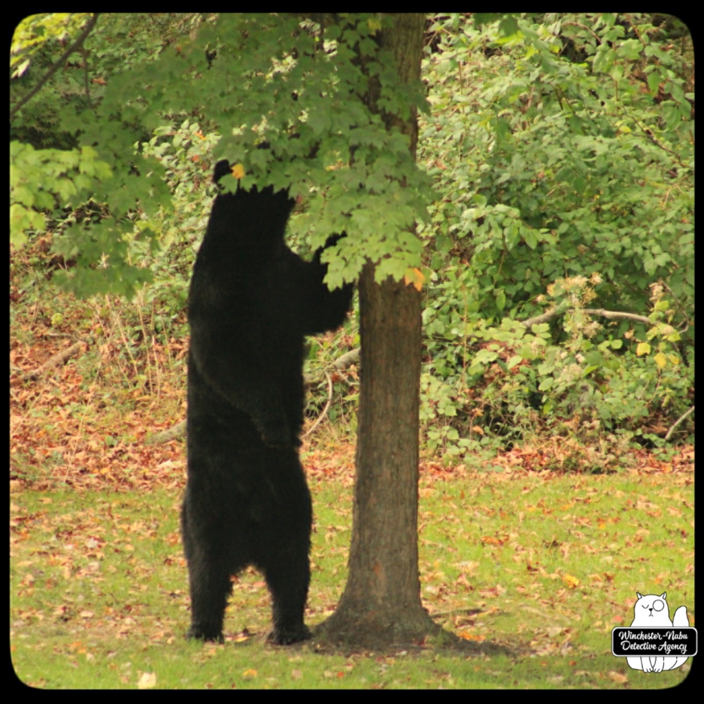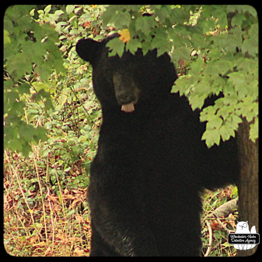 Gus, Oliver, and I witnessed Val walk calmly through the yard. She even looked over at us to make sure we were not going to interfere with her plan. We were up on the observation platform and no intention of getting in her way. It’s probably a bad idea to interrupt a bear anyway. As for a bear-human shapeshifter? Humans are meaner than animals so if her human side has the personality of an angry woman, we definitely don’t want to get in her way.