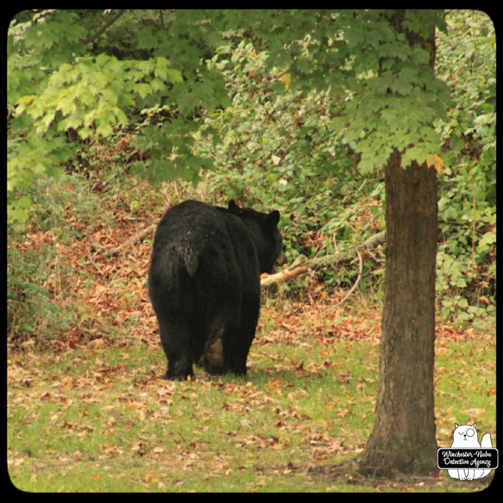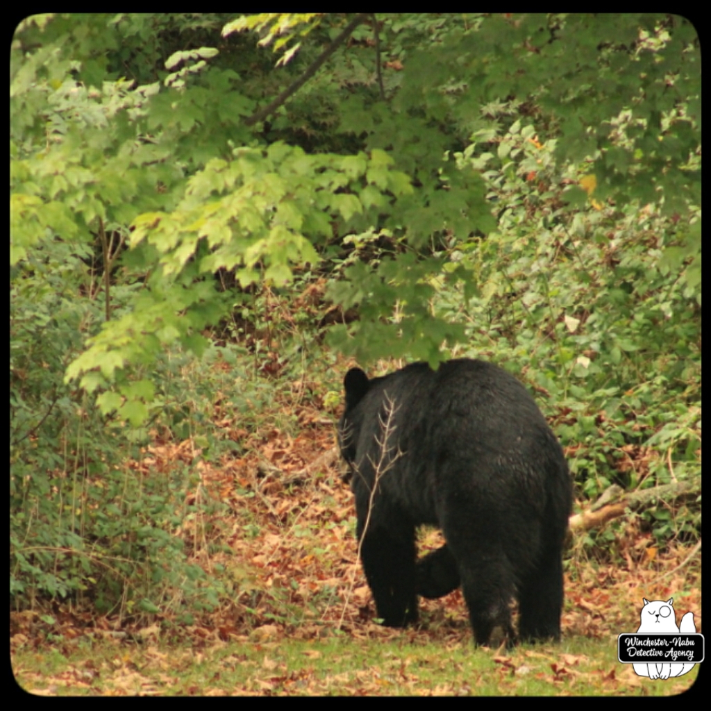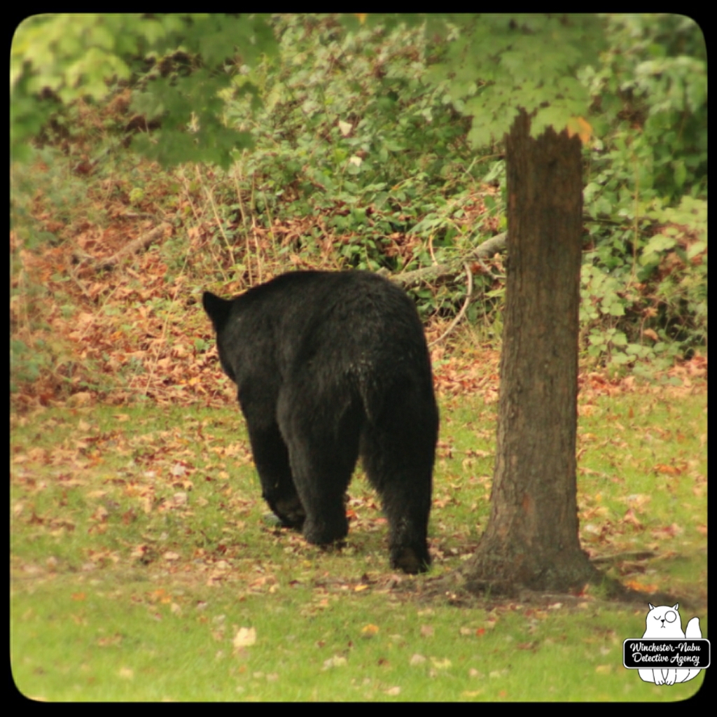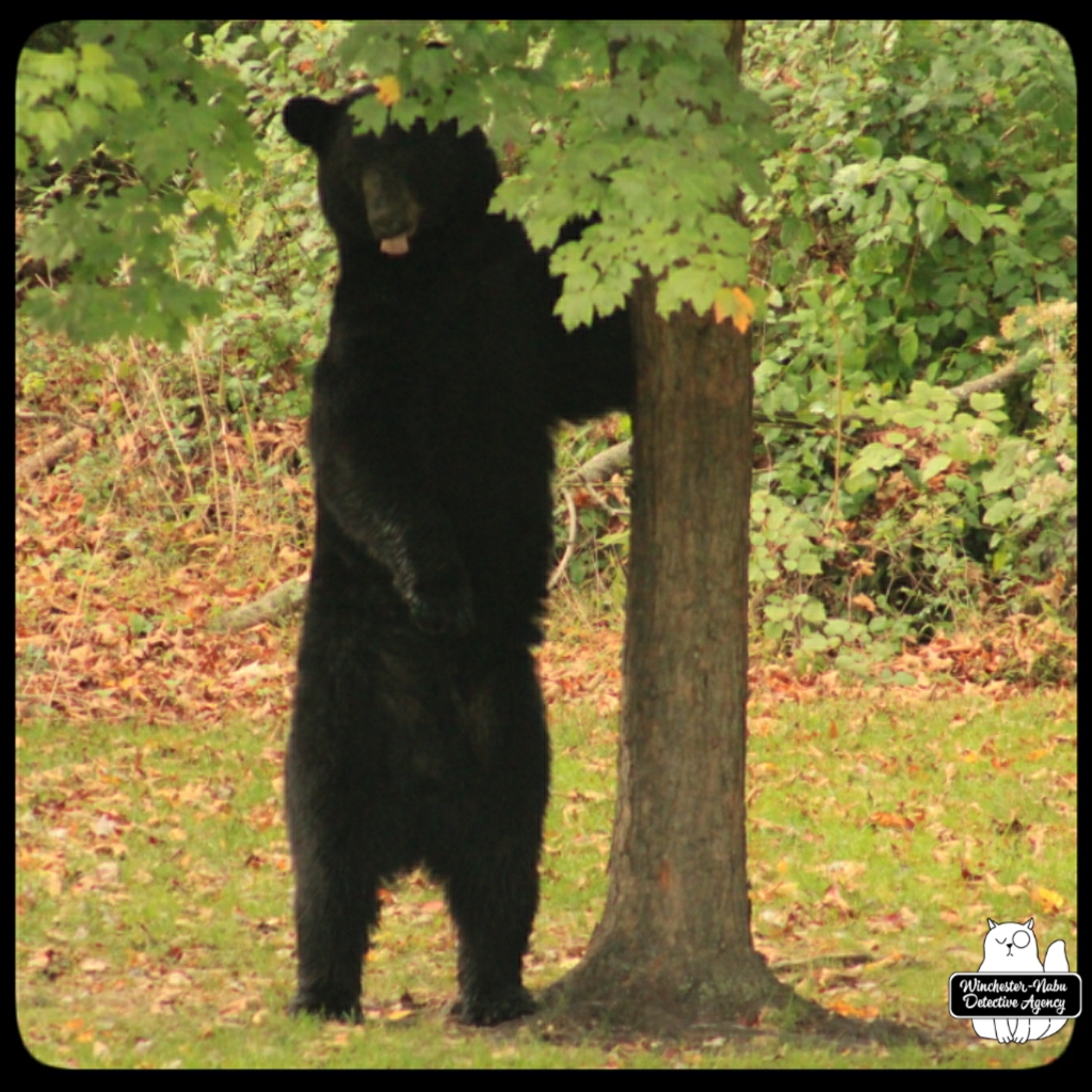 Gus, Oliver, and I witnessed Val walk calmly through the yard. She even looked over at us to make sure we were not going to interfere with her plan. We were up on the observation platform and no intention of getting in her way. It’s probably a bad idea to interrupt a bear anyway. As for a bear-human shapeshifter? Humans are meaner than animals so if her human side has the personality of an angry woman, we definitely don’t want to get in her way.