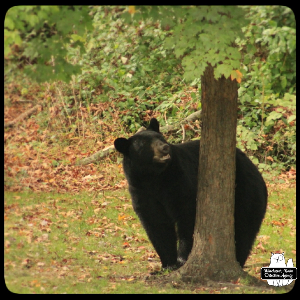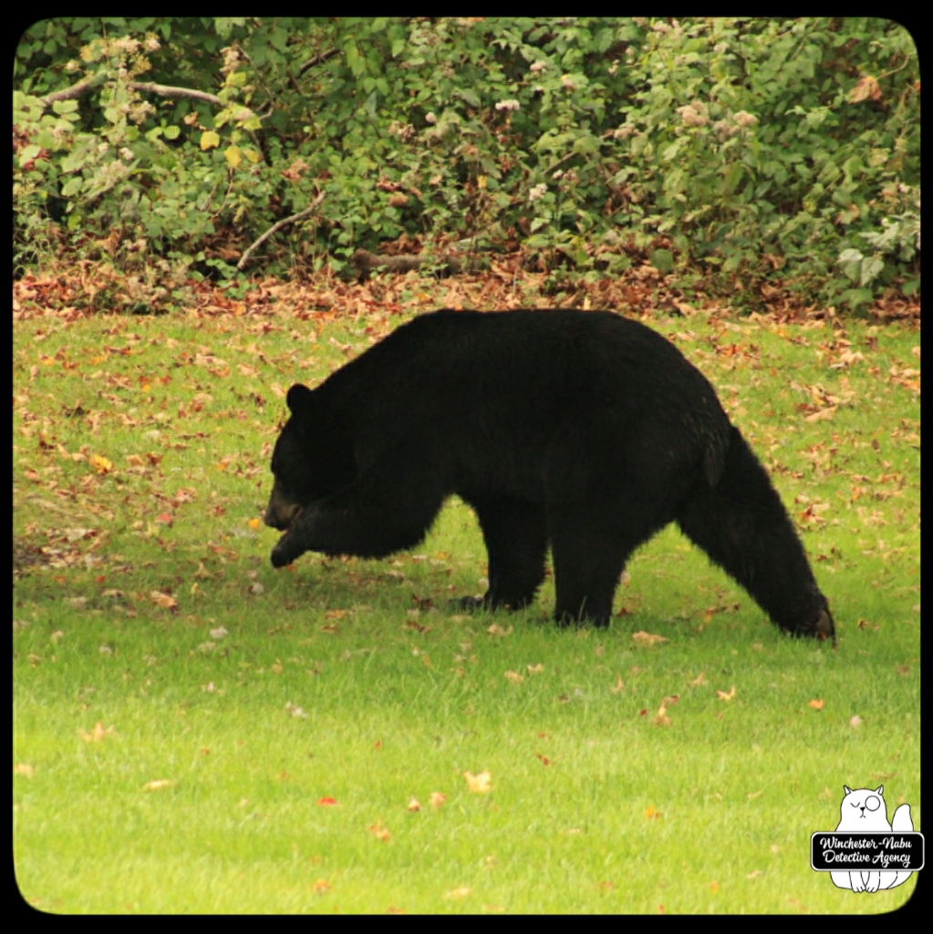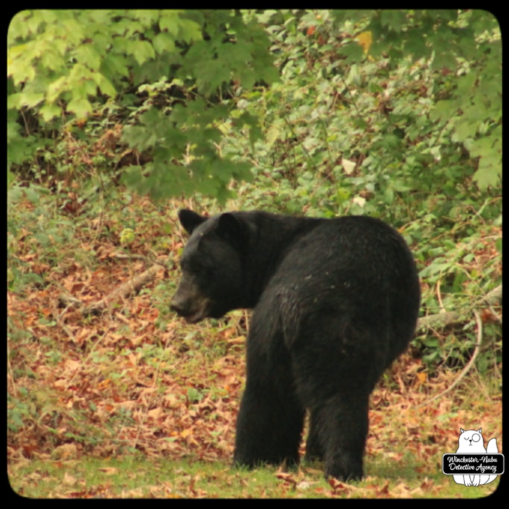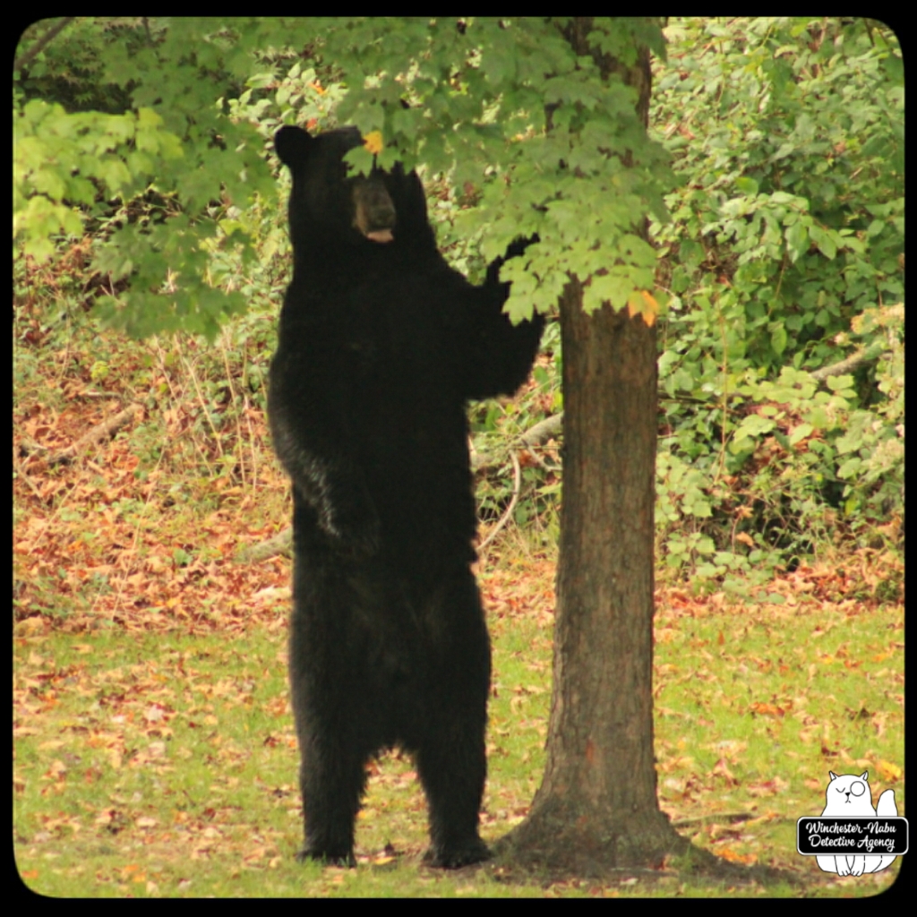Gus, Oliver, and I witnessed Val walk calmly through the yard. She even looked over at us to make sure we were not going to interfere with her plan. We were up on the observation platform and no intention of getting in her way. It’s probably a bad idea to interrupt a bear anyway. As for a bear-human shapeshifter? Humans are meaner than animals so if her human side has the personality of an angry woman, we definitely don’t want to get in her way.