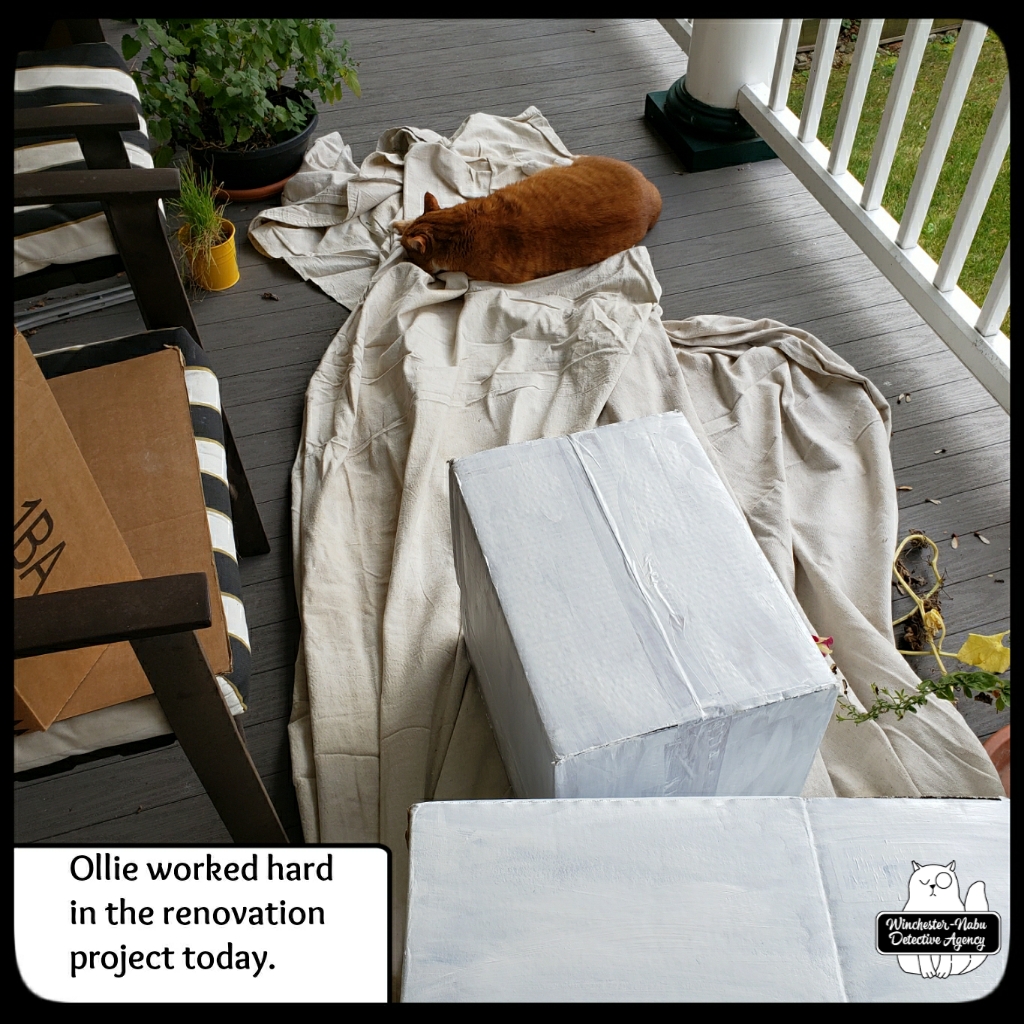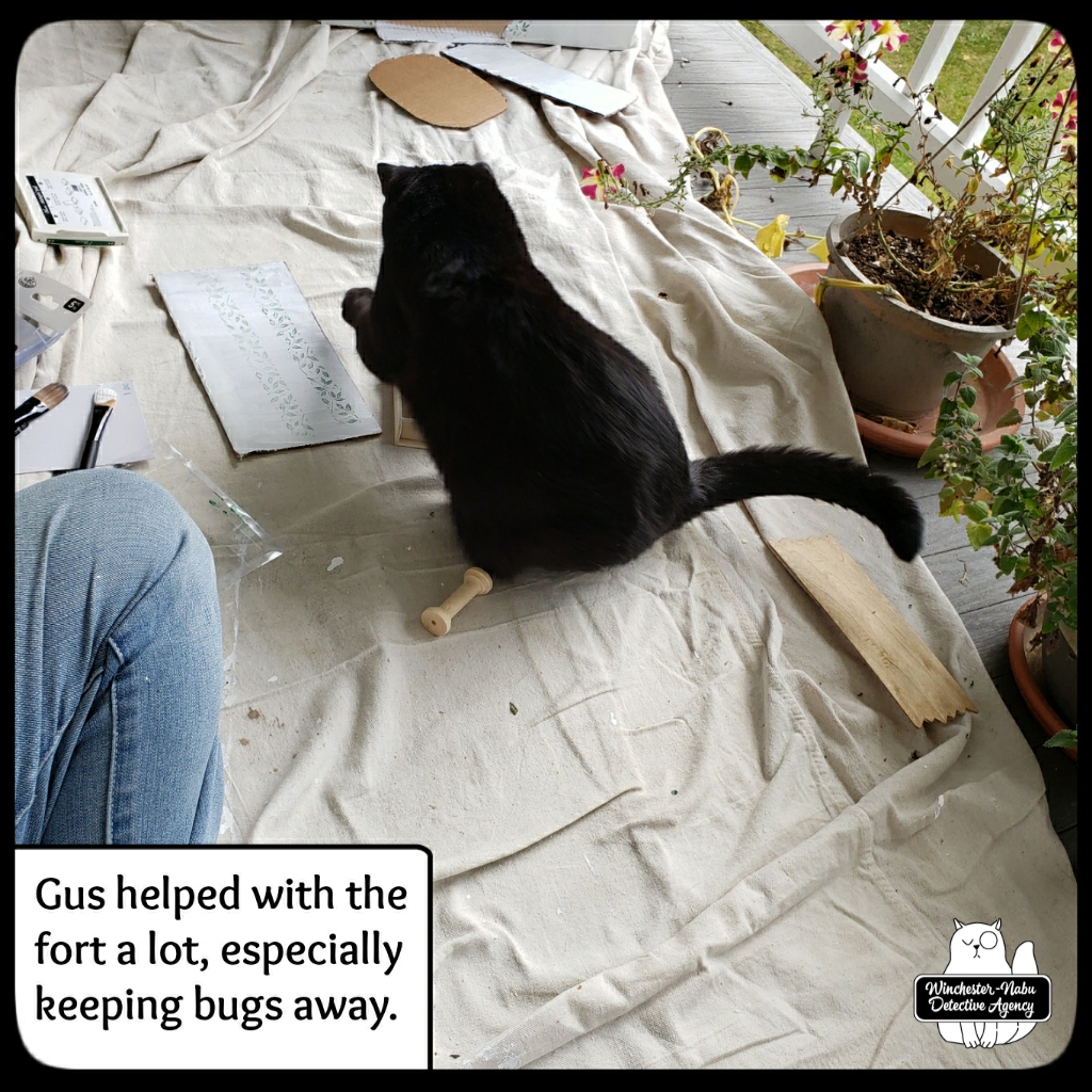 The “B” stands for badasses (or babies who whine a lot). In this case, it refers to Gus and Oliver who have established a noteworthy reputation for catching critters, killing intruders, and solving crimes. Since they have been highly successful, it felt like their offices were due for an upgrade. This is where I came in with back-breaking labor.