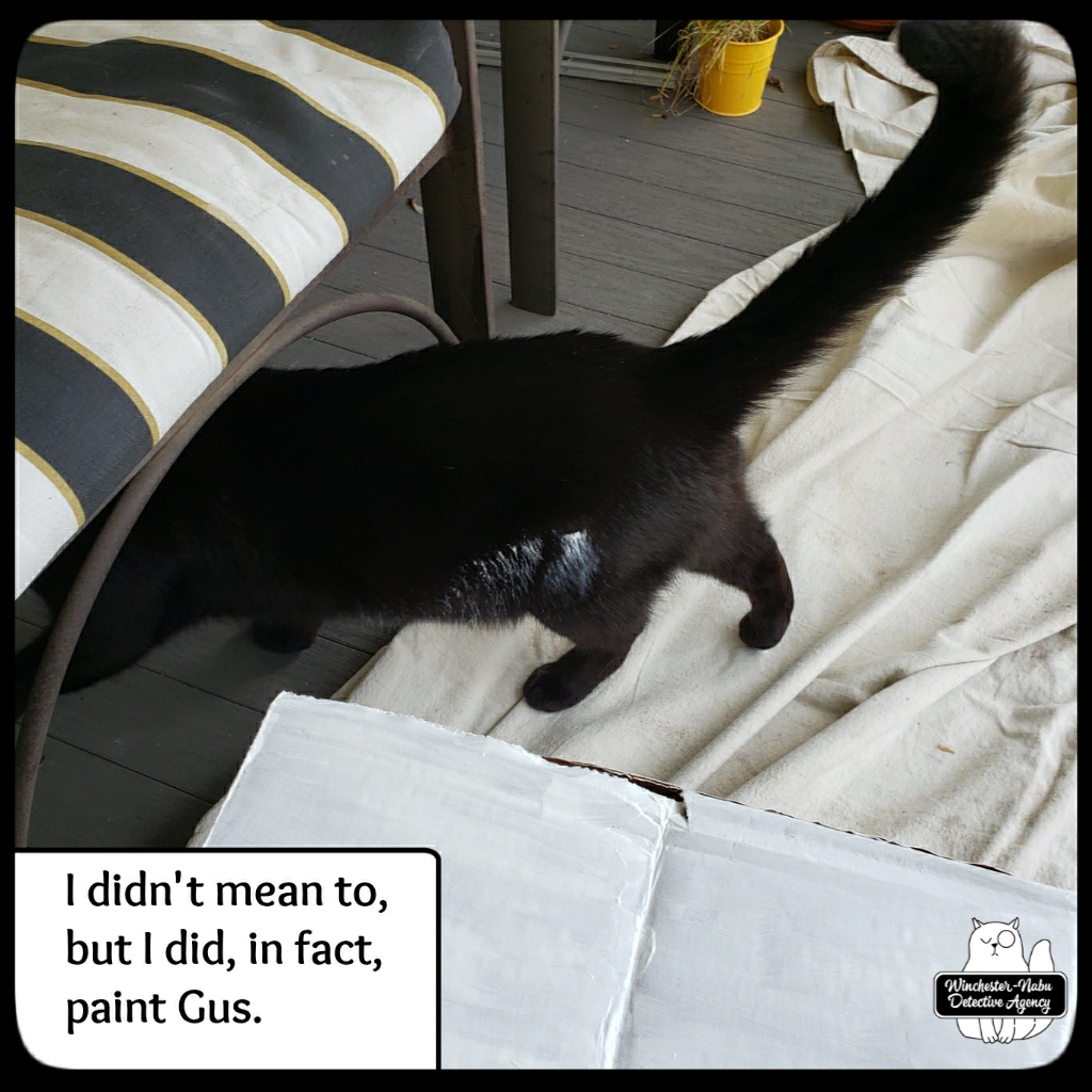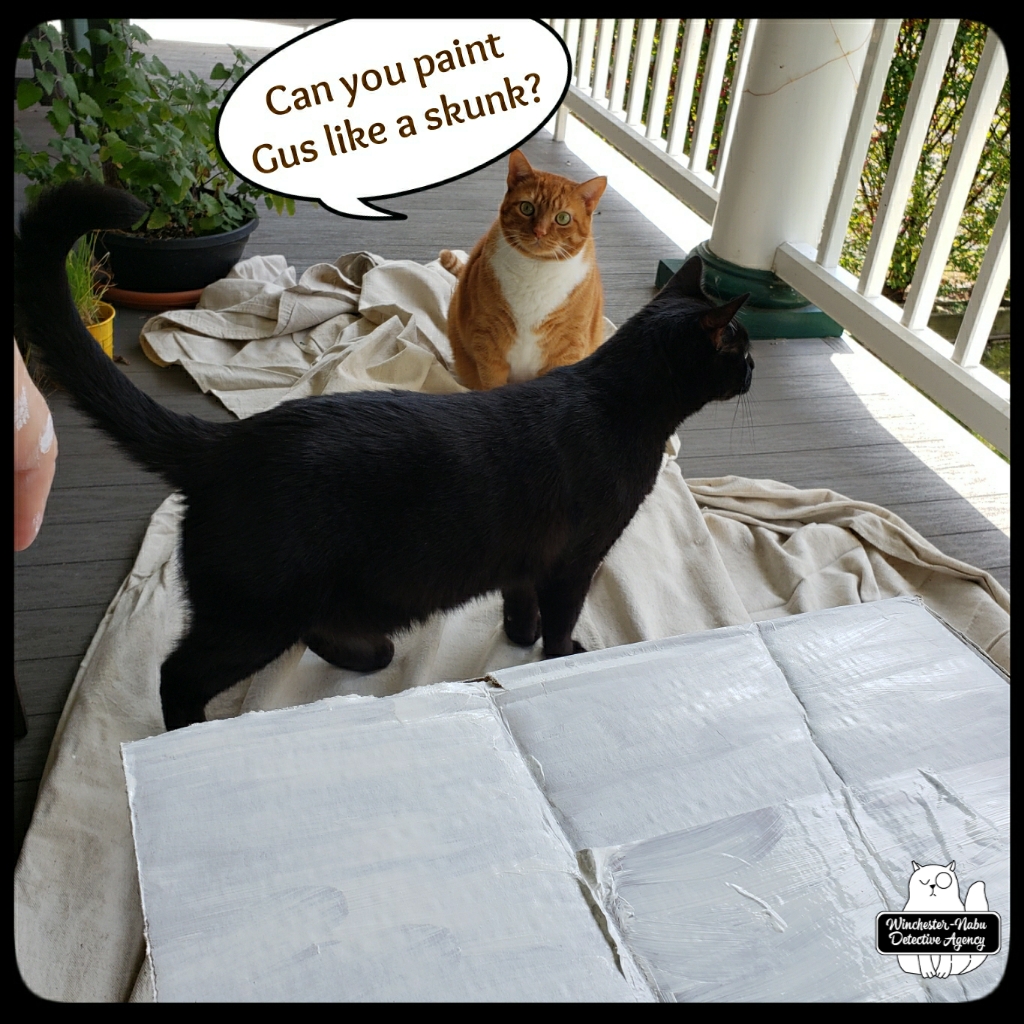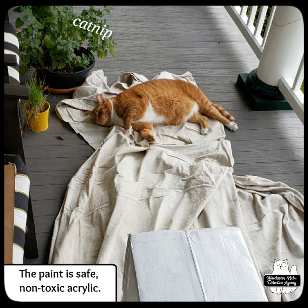 Oliver feels secure enough to smack at Gus through the windows. Sometimes he gets his bowl of catnip delivered inside but that’s only when his Butler is working.