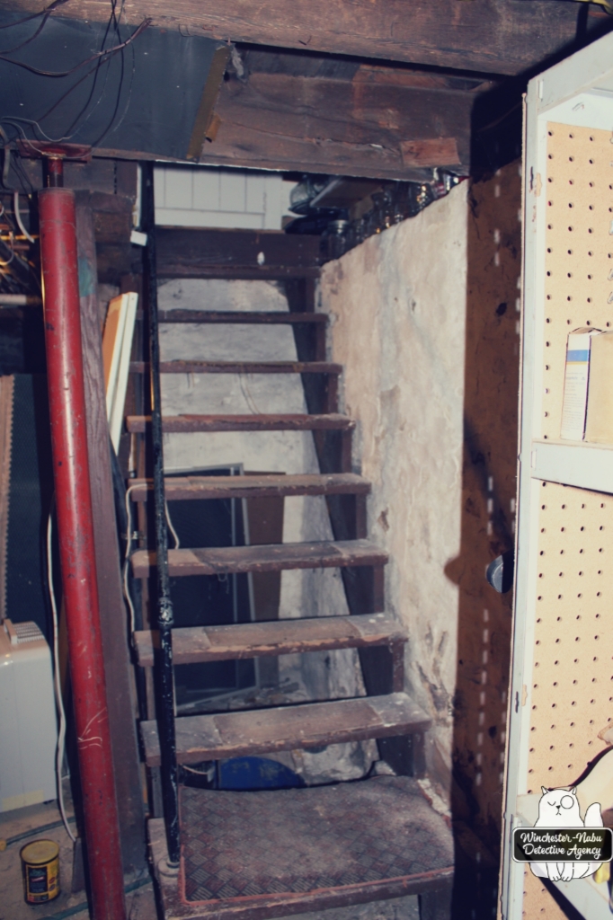 Later, The Cook said she heard cat meows and couldn’t find Gus. She kept calling for him and heard him respond, but could not figure out where he was. I’m sure you see where this is going. As Mike Birbiglia says, “I know, I’m in the future also.” Her anxiousness caused me alarm so I got up and began to search too and since it was a Defcon 3 situation, I didn’t have my camera out. The meowing was coming from the area by the cellar door where it entirely possible that an animal could be stuck in the floors or wall (maybe, who knows for sure?) or actually behind the cellar door where they should not be.
