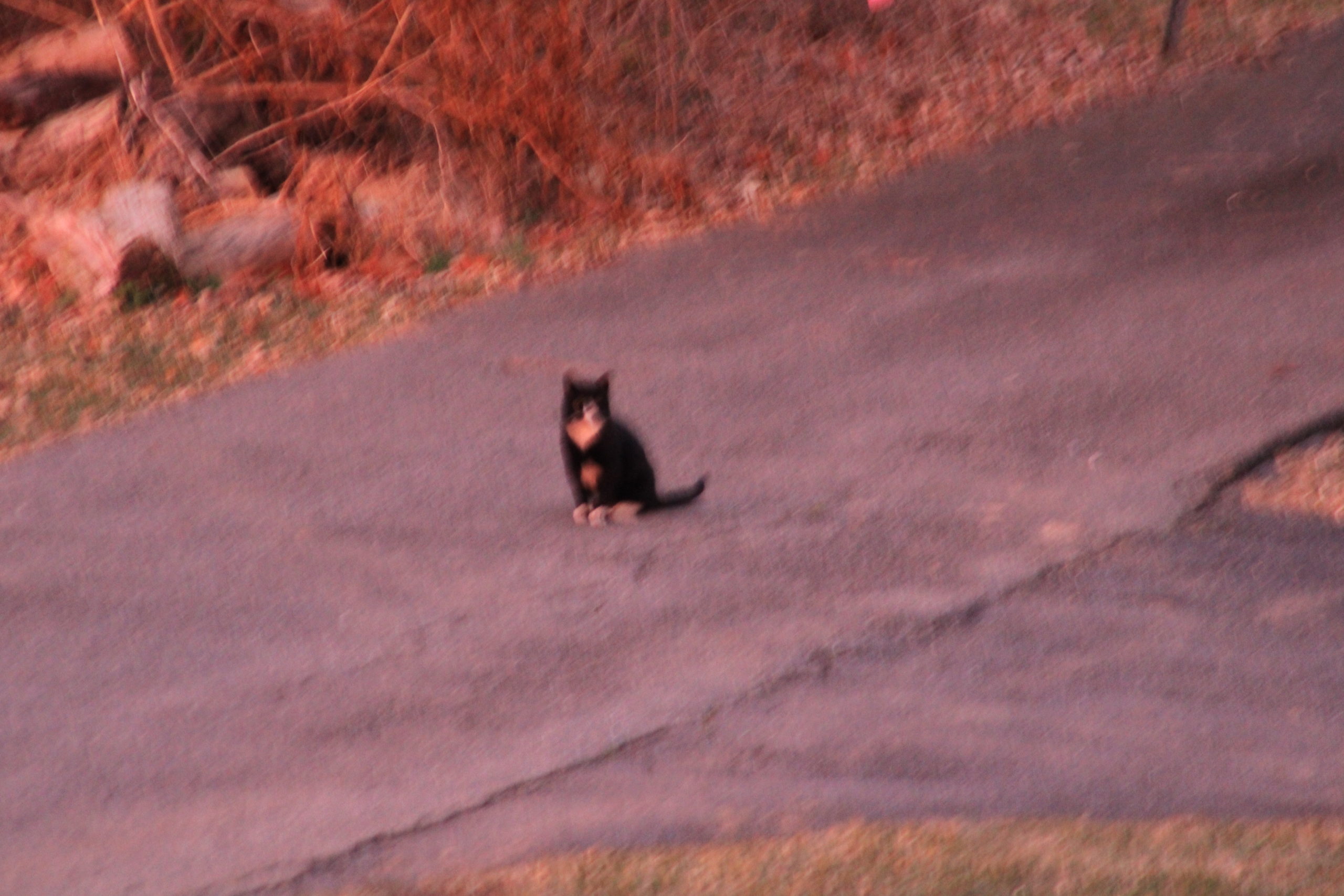 A few minutes later, Mr. Valentine reappeared and nonchalantly sat in the road watching the sky change colors. I wonder if he was sad. I wonder if he had a date and got stood up. Or maybe he was just enjoying the sunset alone and contemplating how he would survive the winter.