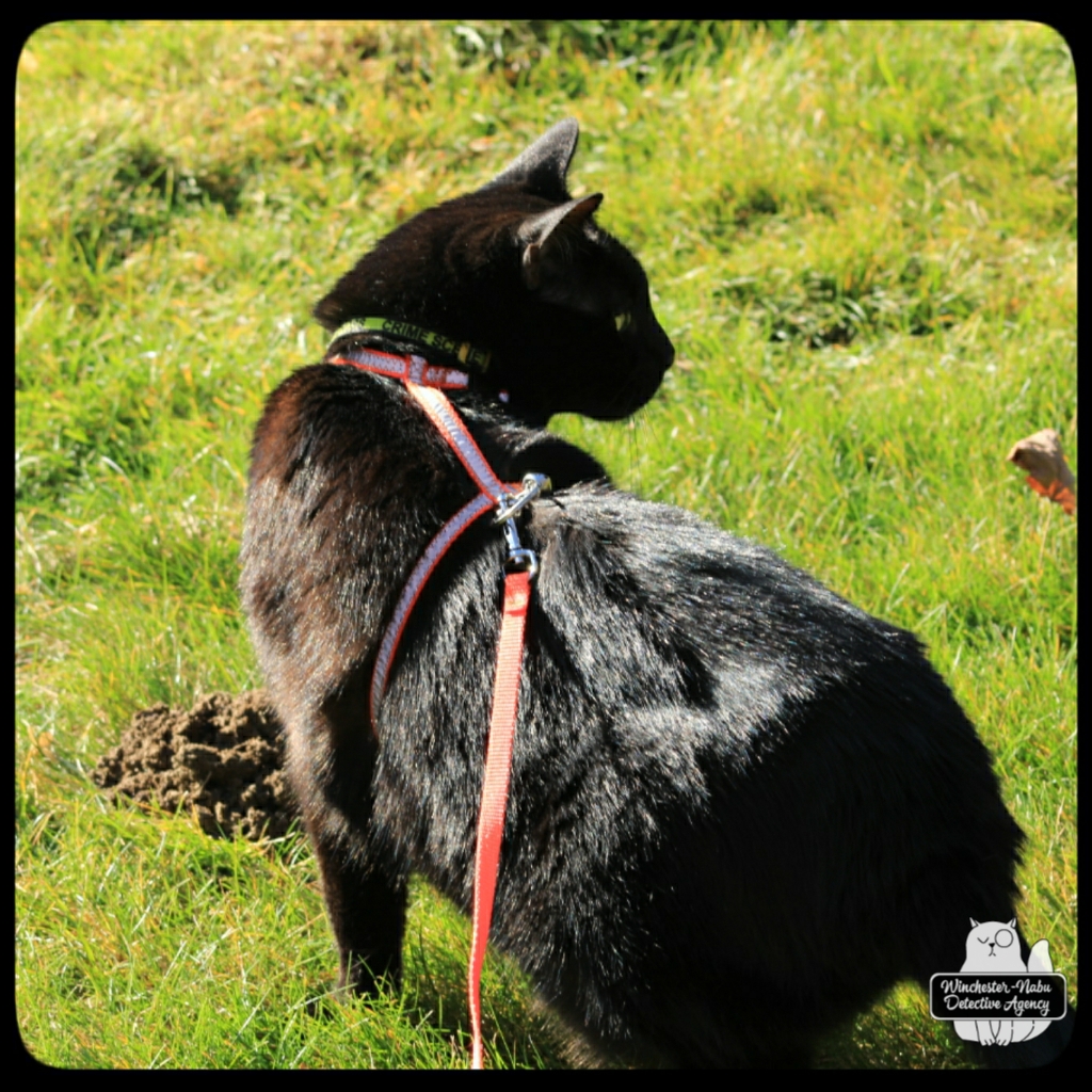 The tuxedo cat came around looking for mice and birds or anything that could be a meal. As it got close to the building wall, it sensed the wood pile on the other side and picked up on the scent of the Gorgon. It decided to retreat without hunting.