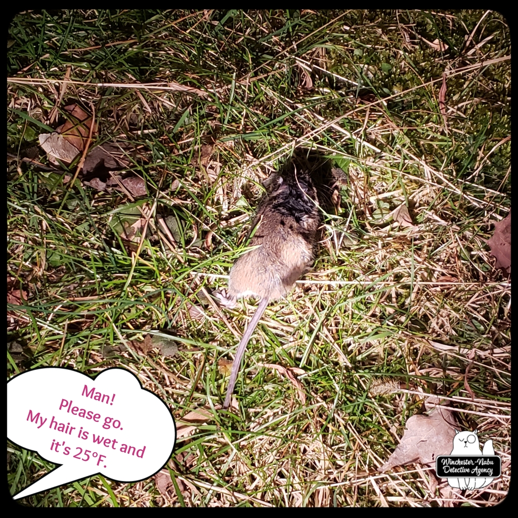 Eventually, there was an criminal critter that I managed to catch before it dodged us and escaped. It was released a little further away than where I usually go (Swipe above Instagram post for release video). My hair was still wet from my shower. I had just taken my sedative. The critter was not eager to be outdoors — and why would it? It had a cushy luxurious life inside the house. Then it was soaked in cat spit and in the freezing cold grass. It’s hard to keep track of them when there doesn’t seem to be any break.