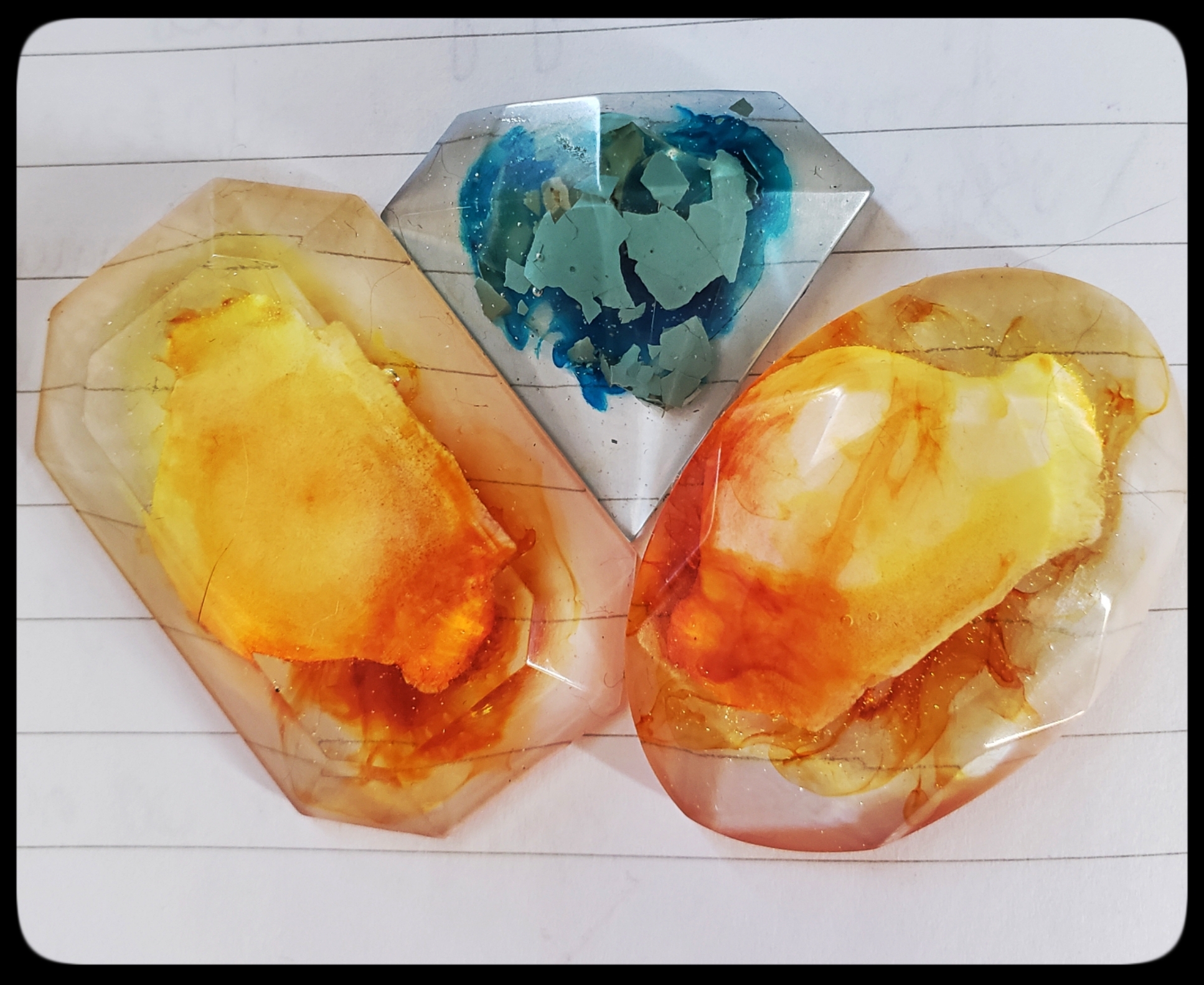 That’s some bossy evidence stored in boxes, bags, and cabinets. Ages ago, I bought small silicone molds that are shaped like gems and held on to this little mold waiting for the day I felt brave enough to try making my own Infinity Gems.