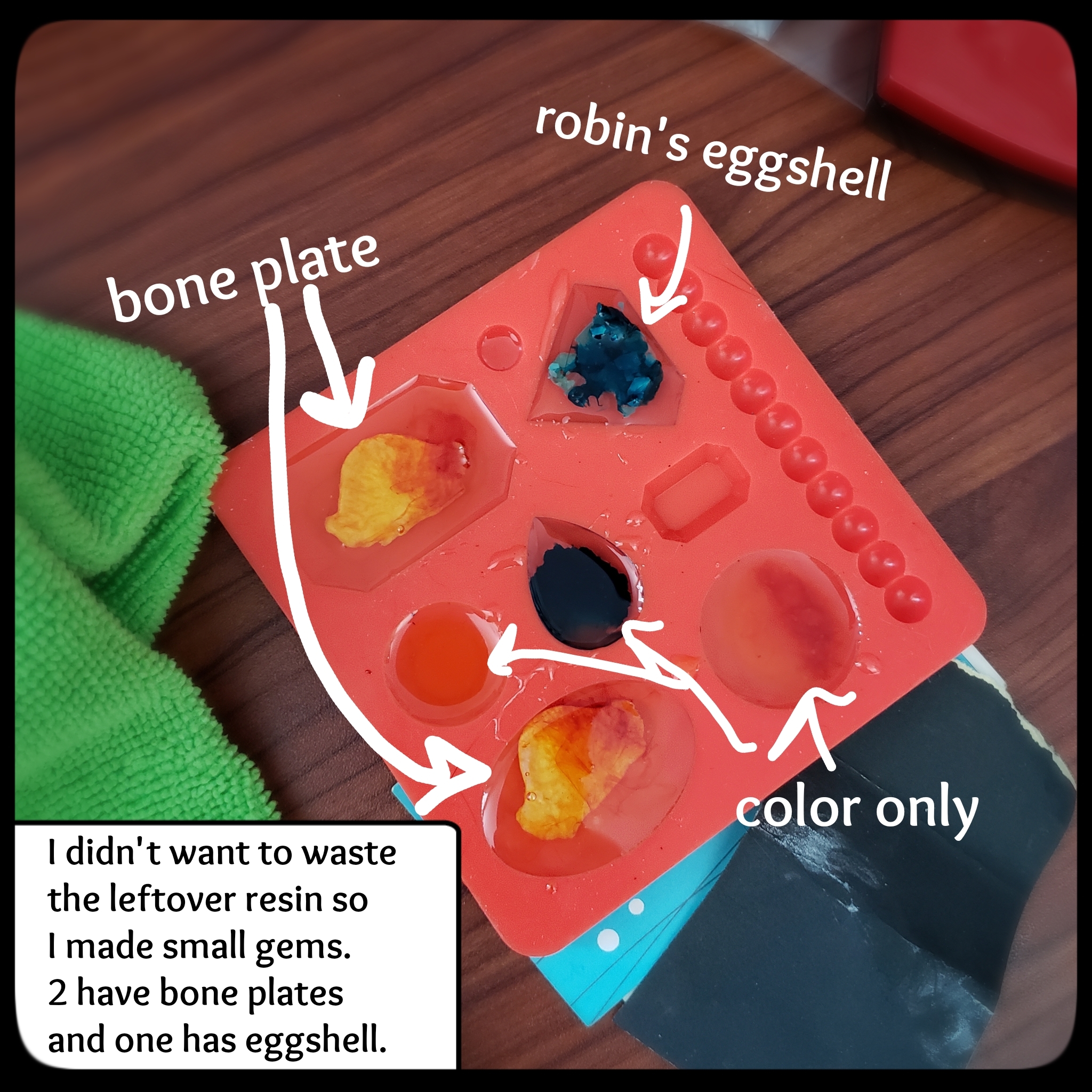 As the curing progressed, I thought I had a good handle on things except for the feathers. I knew that project had to pitched into the garbage because it never cured. I demolded the other projects and thought they were all good. It turns out they weren’t. The second eggshell in a pyramid began to squish in my fingers as I sanded it.