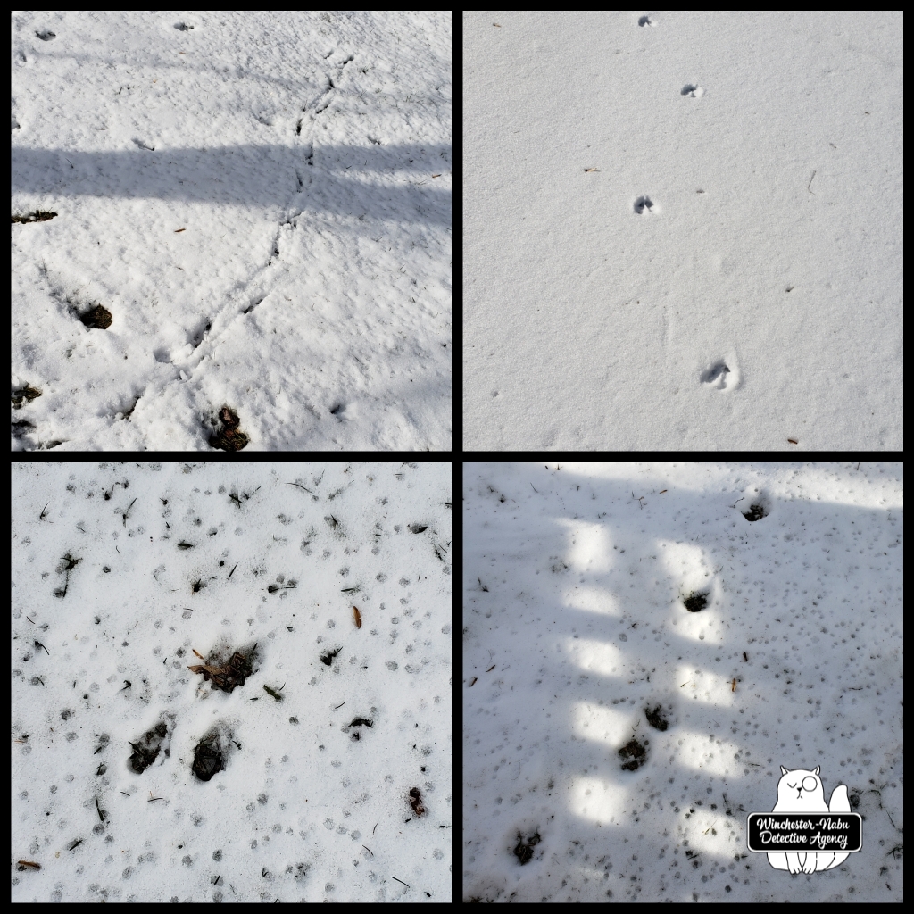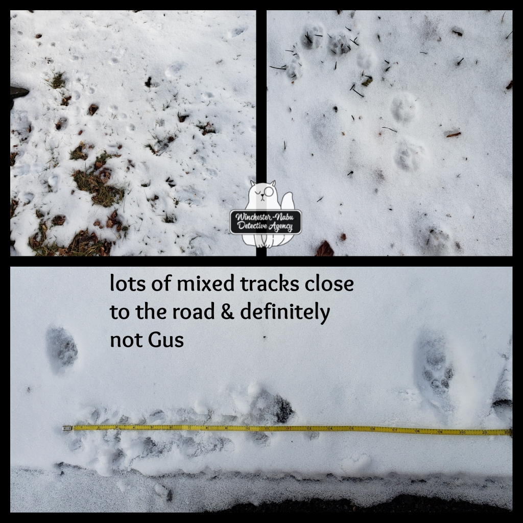 The little bit of snow that has fallen allowed Gus and me opportunity to study some wildlife tracks that aren’t visible like this in the summer unless there’s mud. Snow makes for a more pleasant tracking experience and better photos.