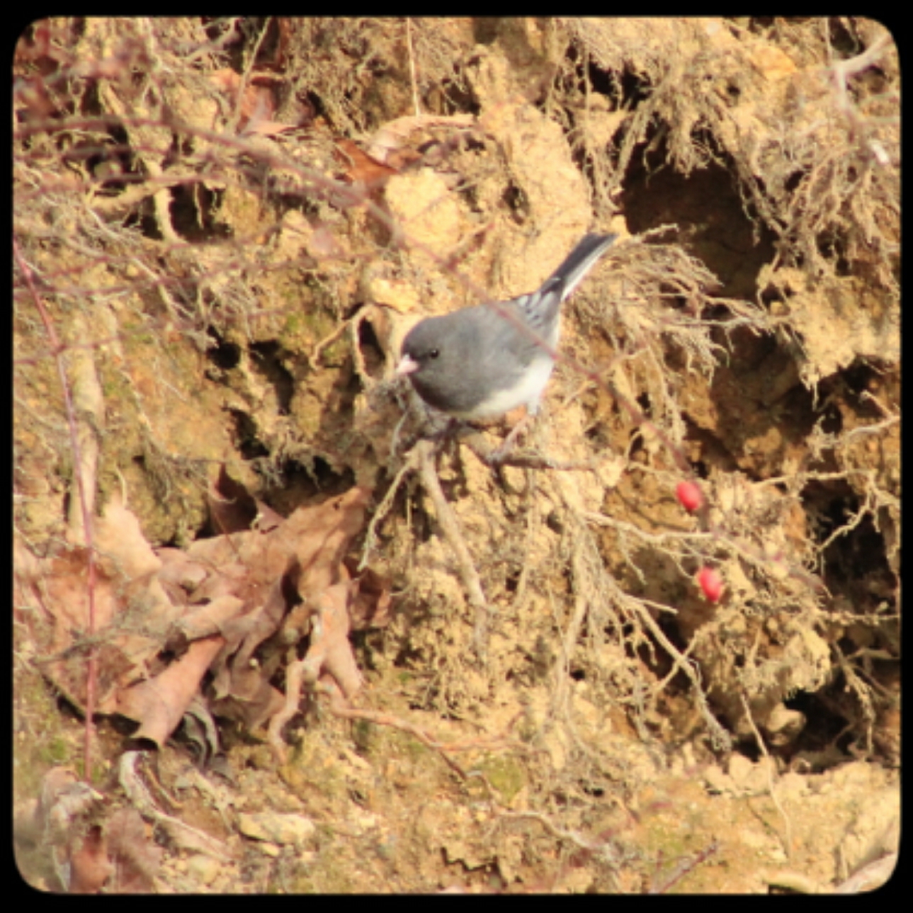 Honestly, the Blue Jay Gang acted as if they hadn’t eaten in a year. Peanuts-peanuts-peanuts! That’s all they cared about! They wouldn’t tell me anything. A dapper cardinal kept trying to land near me, but those jays were oafs in the branches and would scare it away. A red-tailed hawk perched on a branch and wanted to be left alone. There was a remarkable Great Blue Heron that zipped overhead with no interest in getting involved with us whatsoever. A flock of dark-eyed juncos came by. They are skittish. I can’t speak to them directly. They require a mediator.