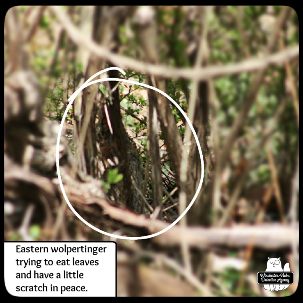 As noted during the week on Instagram, this critter has the same kind of ear notch as Bun Solo; knowing their coats probably change during the seasons like other animals and their weight may go up and down because of winter, I’m not sure if this is Bun Solo. It’s so hard to tell, but he was comfortable being about 10-15 feet from me so I keep thinking it’s him. I don’t know if wolpertingers eat peanuts, but I left a few on the trail before I detoured to find Gus.
