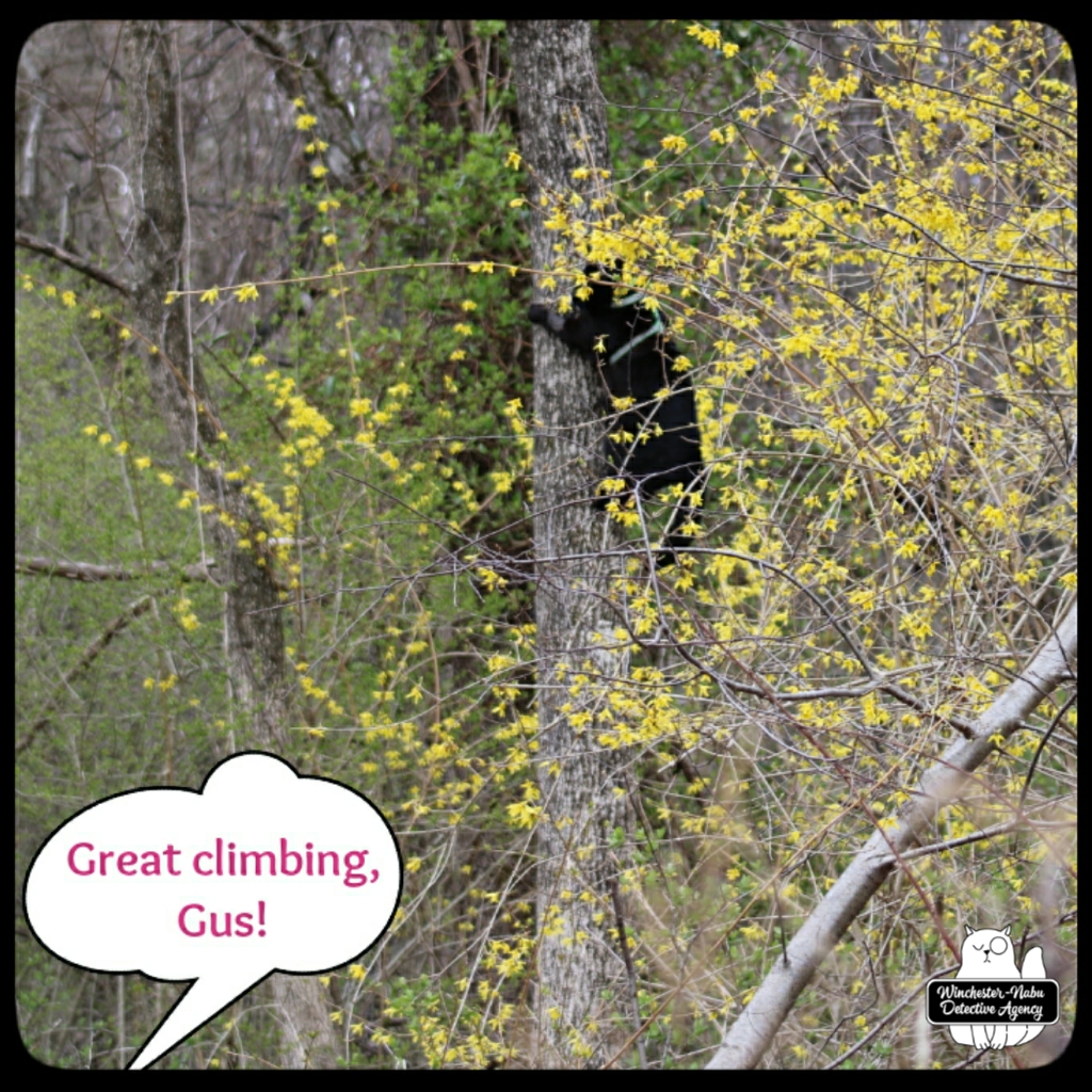 Gus climbing a tree as he ran through Bunny Hollow.