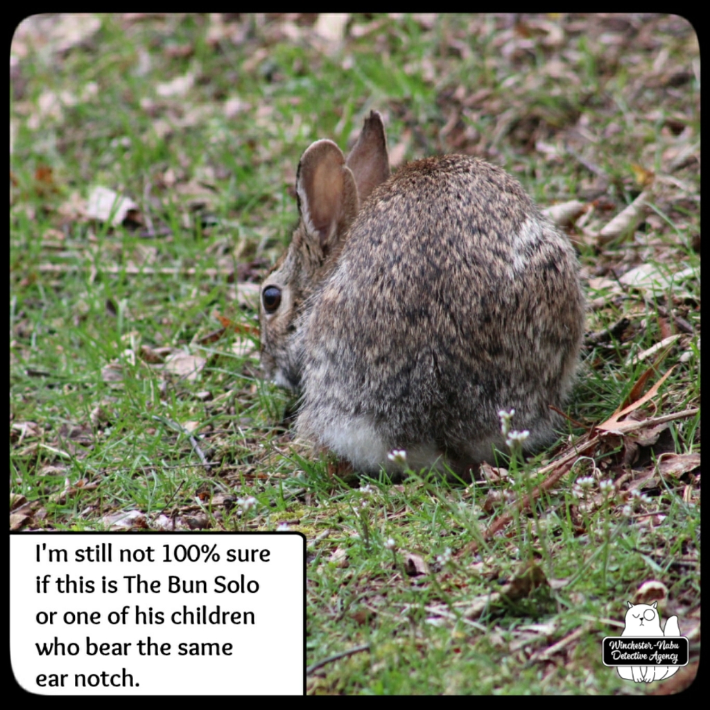There’s also Silver Blaze to consider. She has a white blaze on her forehead. This bunny creature that I encountered didn’t turn around to face me so I never got a look at its forehead. However, Silver Blaze never had the ear notch like Bun Solo.