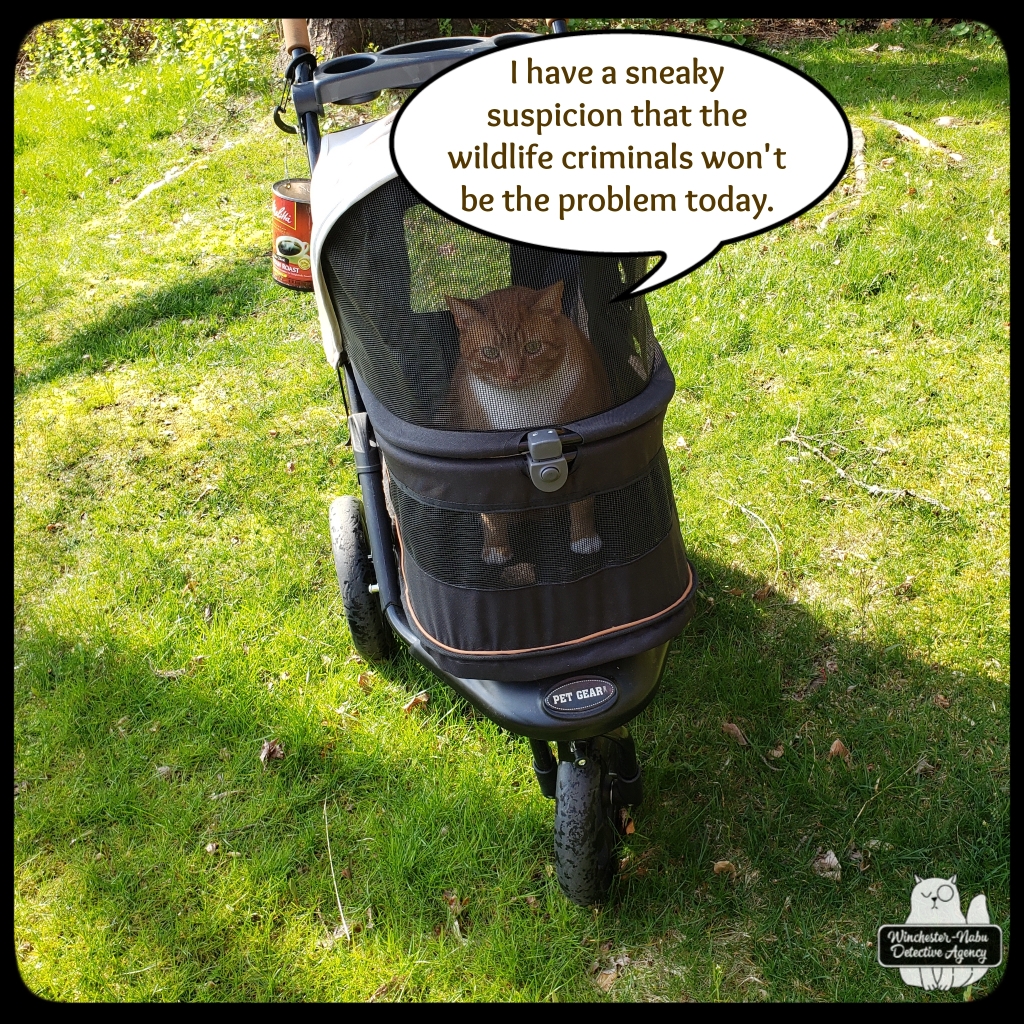 Just when I thought Gus was finished pulling such shenanigans — at least for a while to give me a break — he did it again! I had considered my write up on this finished, but then the Butler came over on Friday night and Gus spotted the opportunity. He saw the human parking his car and coming towards the house’s hobbit size entrance. Gus positioned himself perfectly and waited. The door opened and darted up the two steps and out to freedom in all his naked glory! We were lucky Gus ran into the backyard and stopped close by at the maple tree. The Butler was able to quickly retrieve the naked Houdini-wannabe and bring him back home. That pretty much describes Gus’ personality. Always wanting to be naked and free.