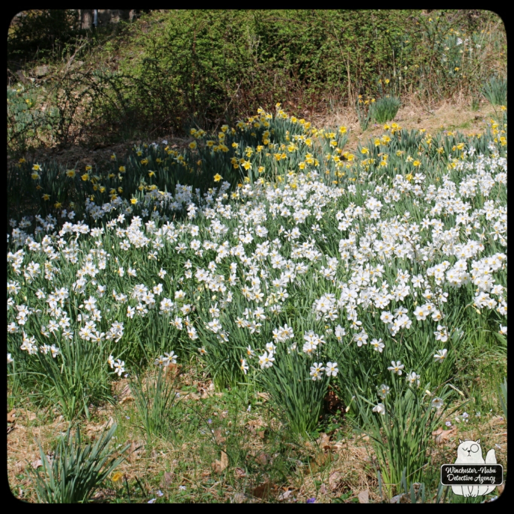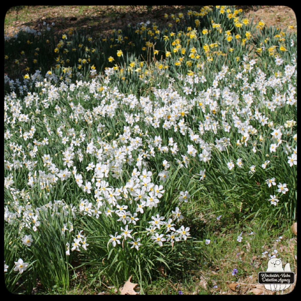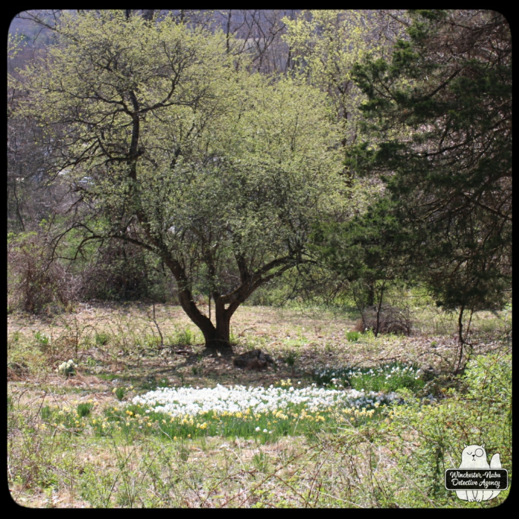 This is a case file of the missing Gus. Two days in April (and plenty of other times), Gus was compelled to leave my side. One day his adventurous spirit won because I saw him resting under the hay wagon/trailer and I thought it would be an acceptable time for me to go pick some flowers. Of course he didn’t stay put.