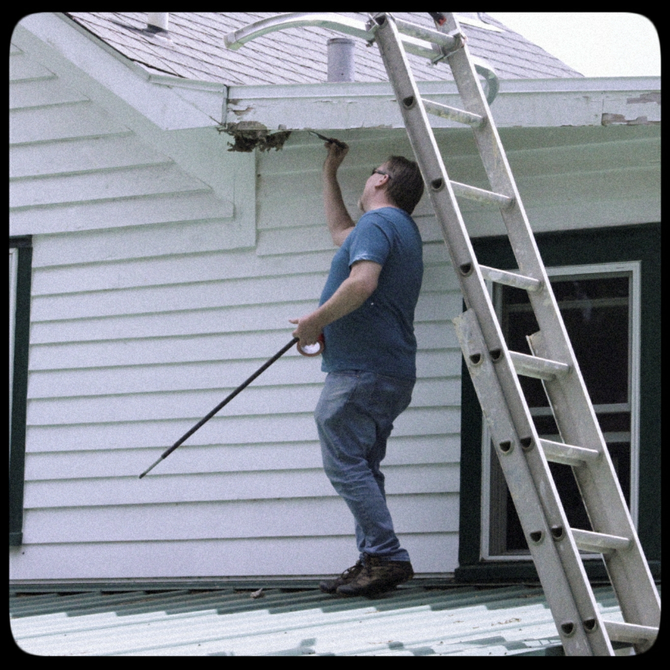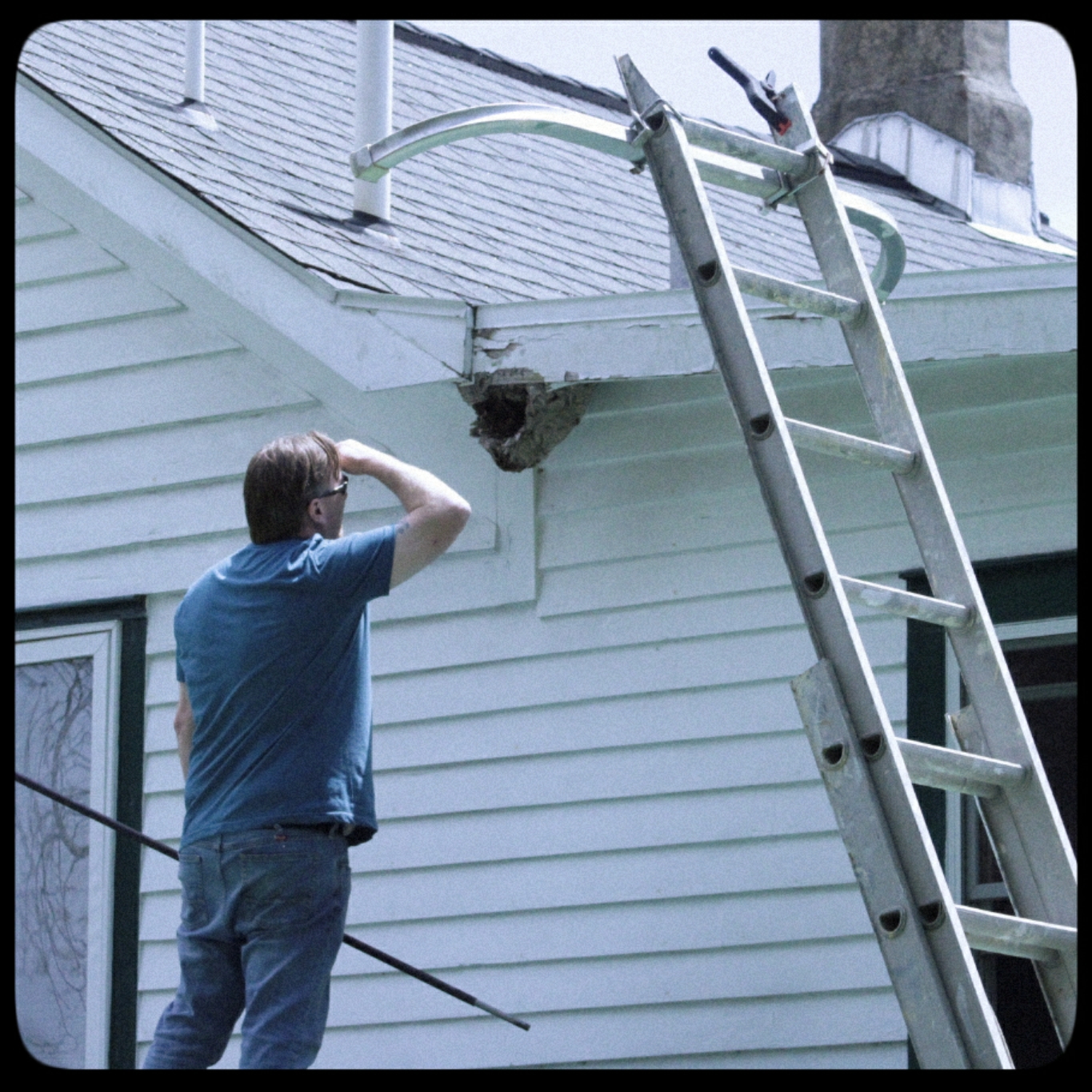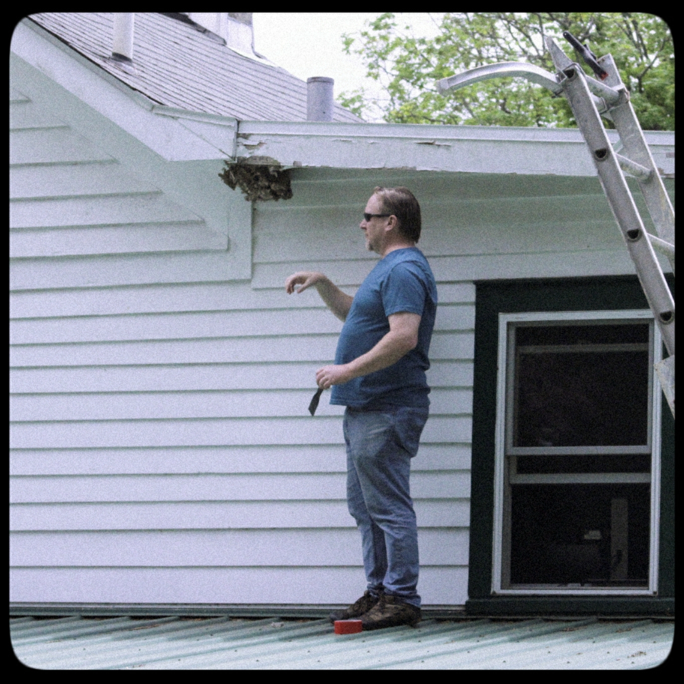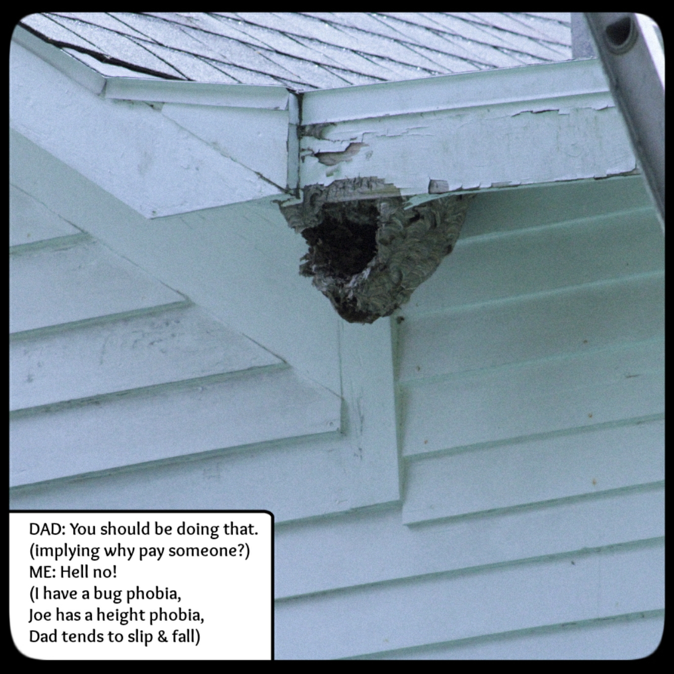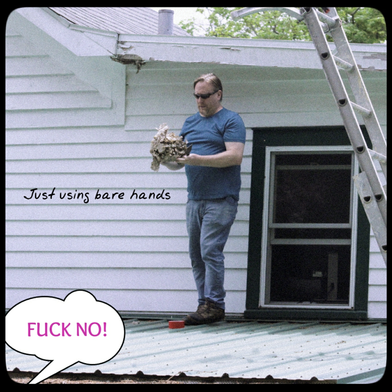 The Grumpy Old Man said I should be the one up there scraping off that nest! *insert Ray Liotta type laugh here* Never gonna happen. I guess if I could be absolutely sure the nest was empty, then I’d do it. Even so, Dave explained how hard the nest paper is on the side attached to the building. It’s like MDF, medium density fiberboard (I’ve been watching a lot of crafting videos on YouTube).