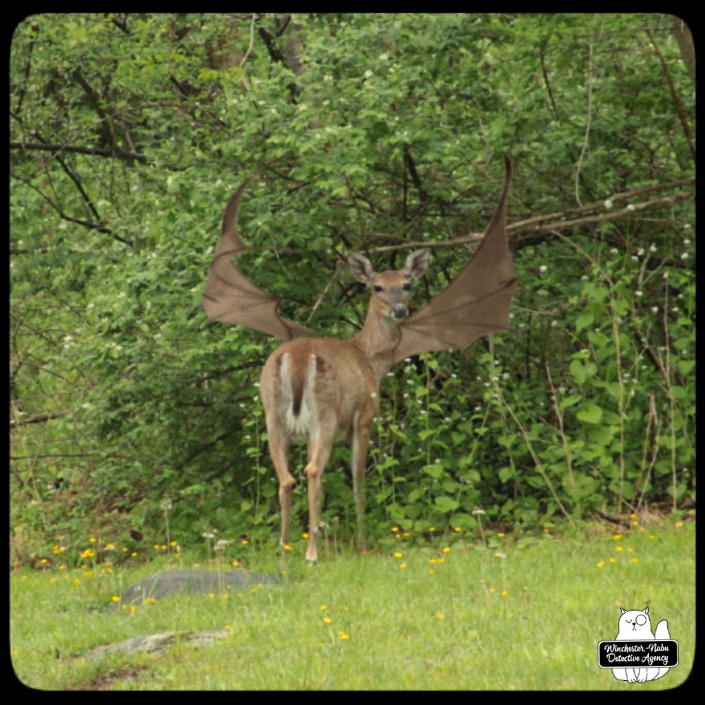 Now, the question is Why? Why would the devil-deer cryptids need to hide their wings at all? Since hunting for trophies, “sport,” and food are still part of our ecosystem, there’s no doubt any creature considered exotic would have a target on it. There are state laws allowing for the population control of white-tailed deer which is probably the most common game meat. We had to consider why another creature would want to disguise itself as a popular game animal.