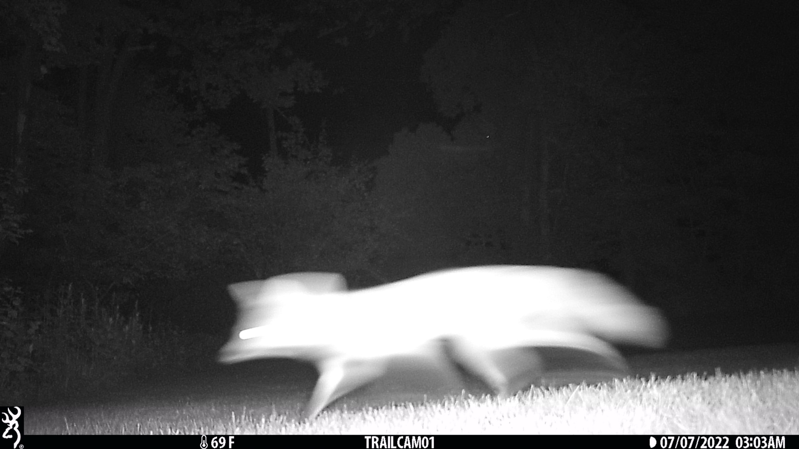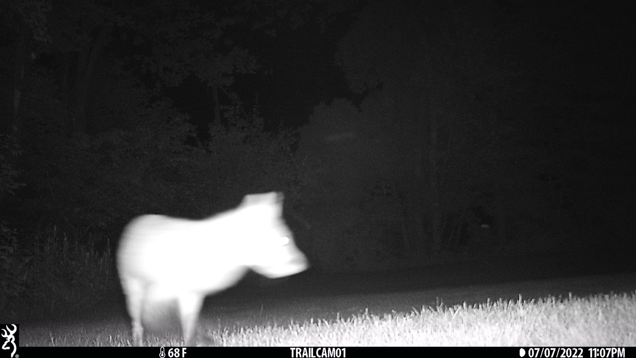 With my new trailcam, there’s now a better chance of getting evidence of when these gorgeous, sneaky creatures come to visit. We got some still images and you can see how the night vision technology of an animal right there up close to the lens isn’t great. They look like ghostly specters!