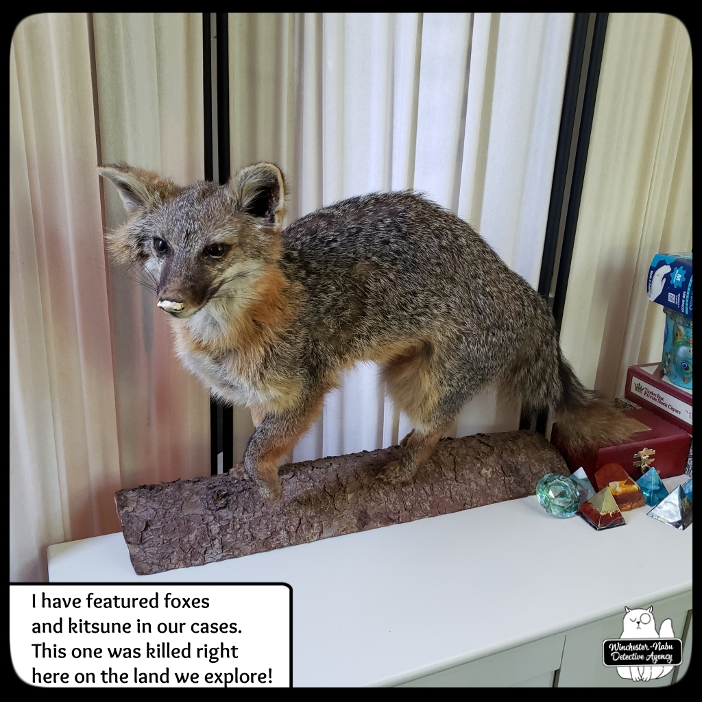 Here at the Winchester-Nabu Detective Agency, I recruited a new employee with all those foxy skills. I was driving down the road and something at a yard sale caught my eye. It was a beautiful fox. I showed some restraint. I went about my day and told myself that if the fox was there on my drive back, I’d stop and ask the price. I kept wondering who killed this beautiful animal. It wasn’t for the fur, the one thing the NJDEP said was valuable in this species.