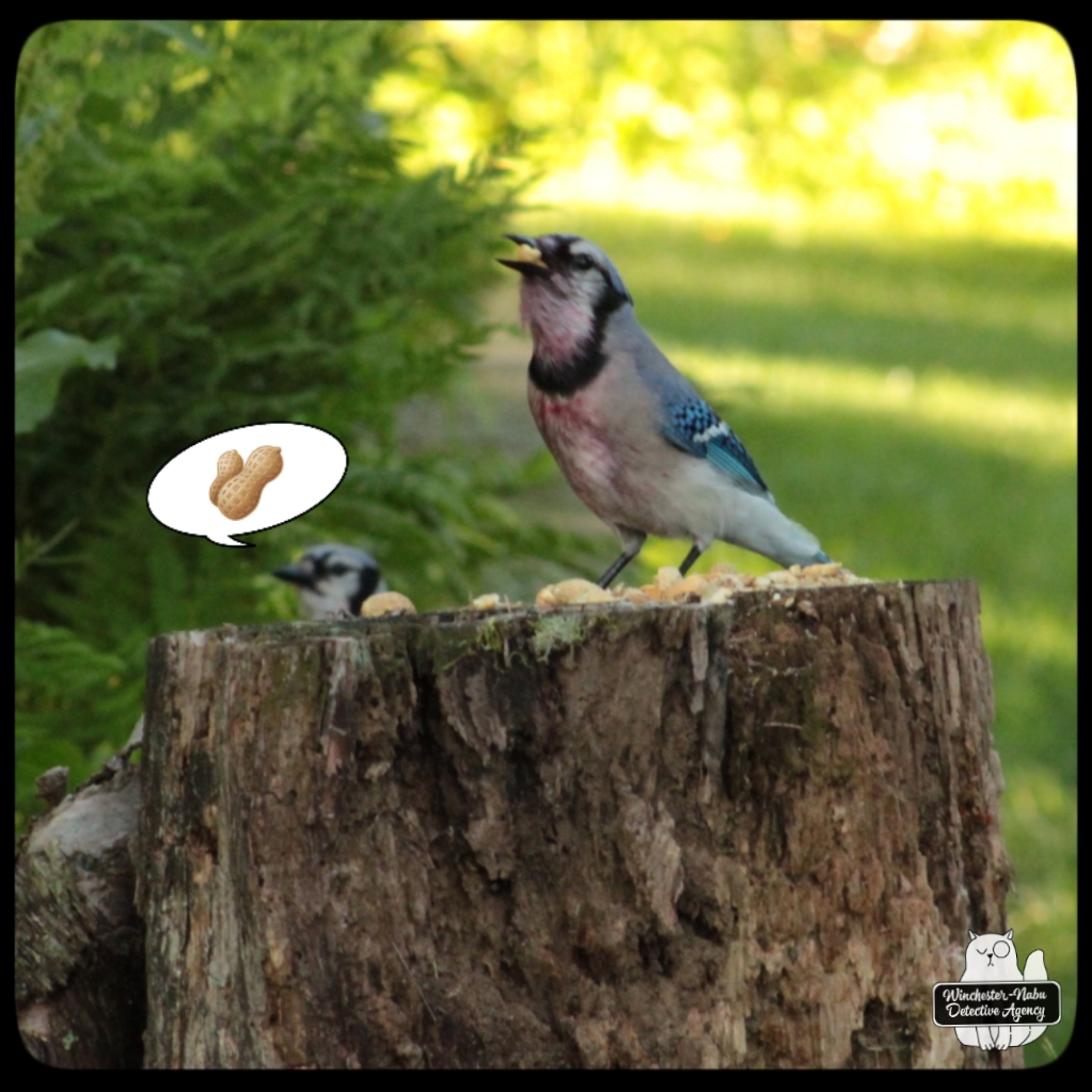 The fact about wave interference isn’t important to this case file, but the list of predators most definitely is. The blue jays have been fighting within the gang this year. It wasn’t something I saw in previous years. It’s gotten bad enough that there are often mid-air wrestling matches during peanut distribution. There are plenty of peanuts for everyone!