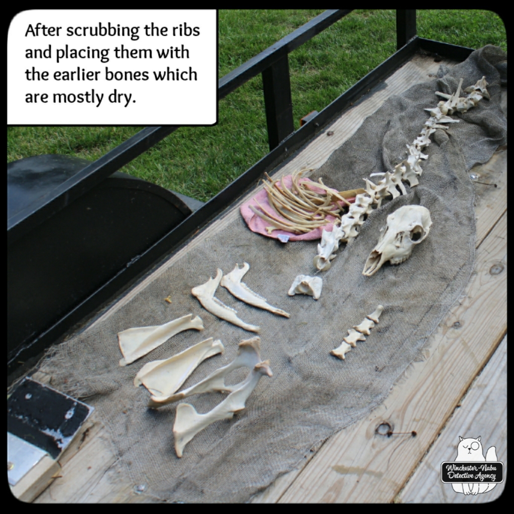 Happy Halloween! Bones are an iconic witchcraft symbol so it’s fitting that I have an update about the second full skeleton I cleaned. As of today, there are only some small bones left to scrub from this skeleton. The rest has been completed. A lot of the photos in this case might be consider stomach-turning gross.
