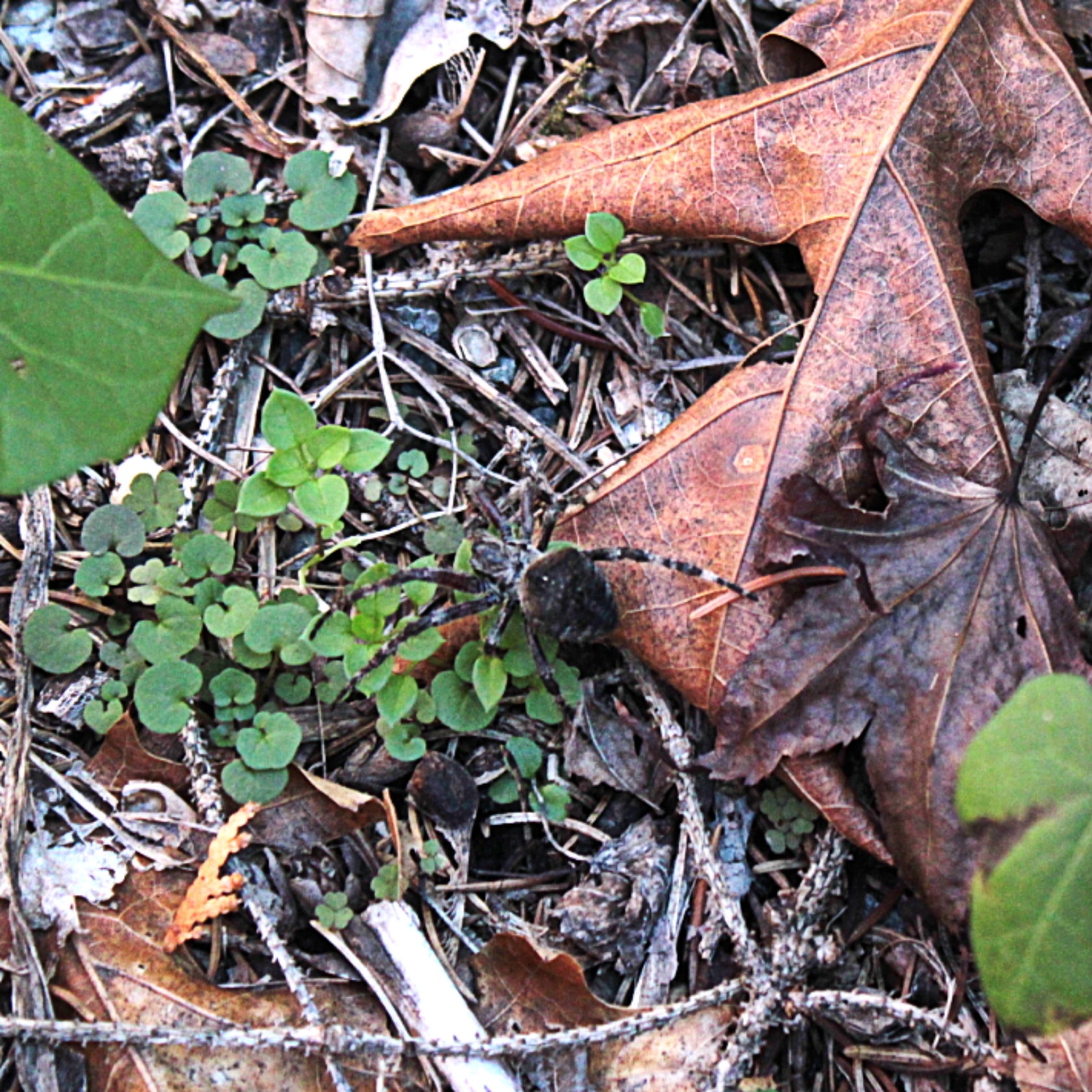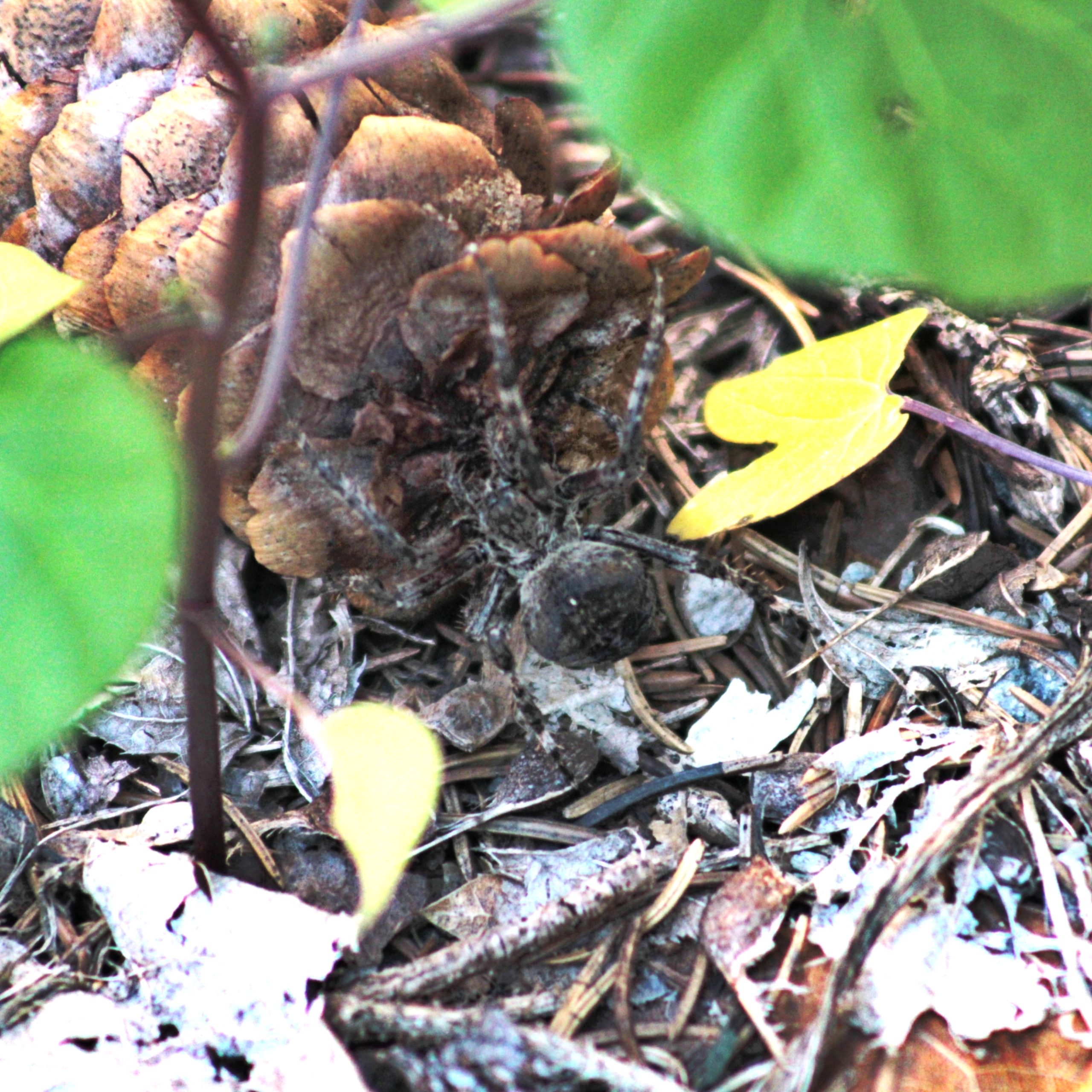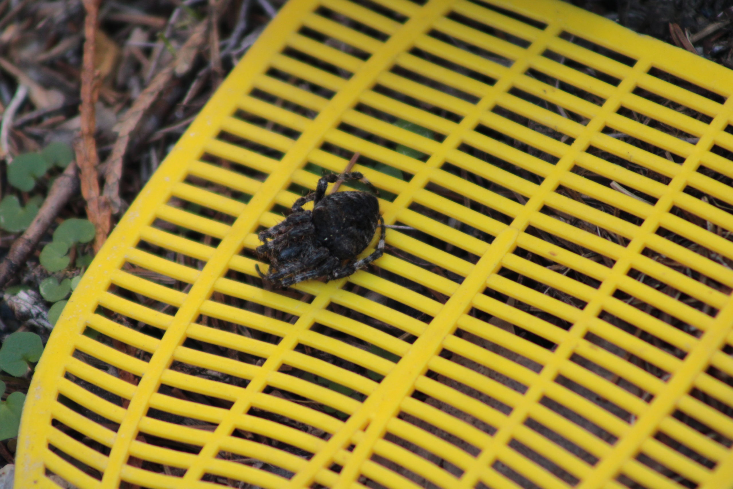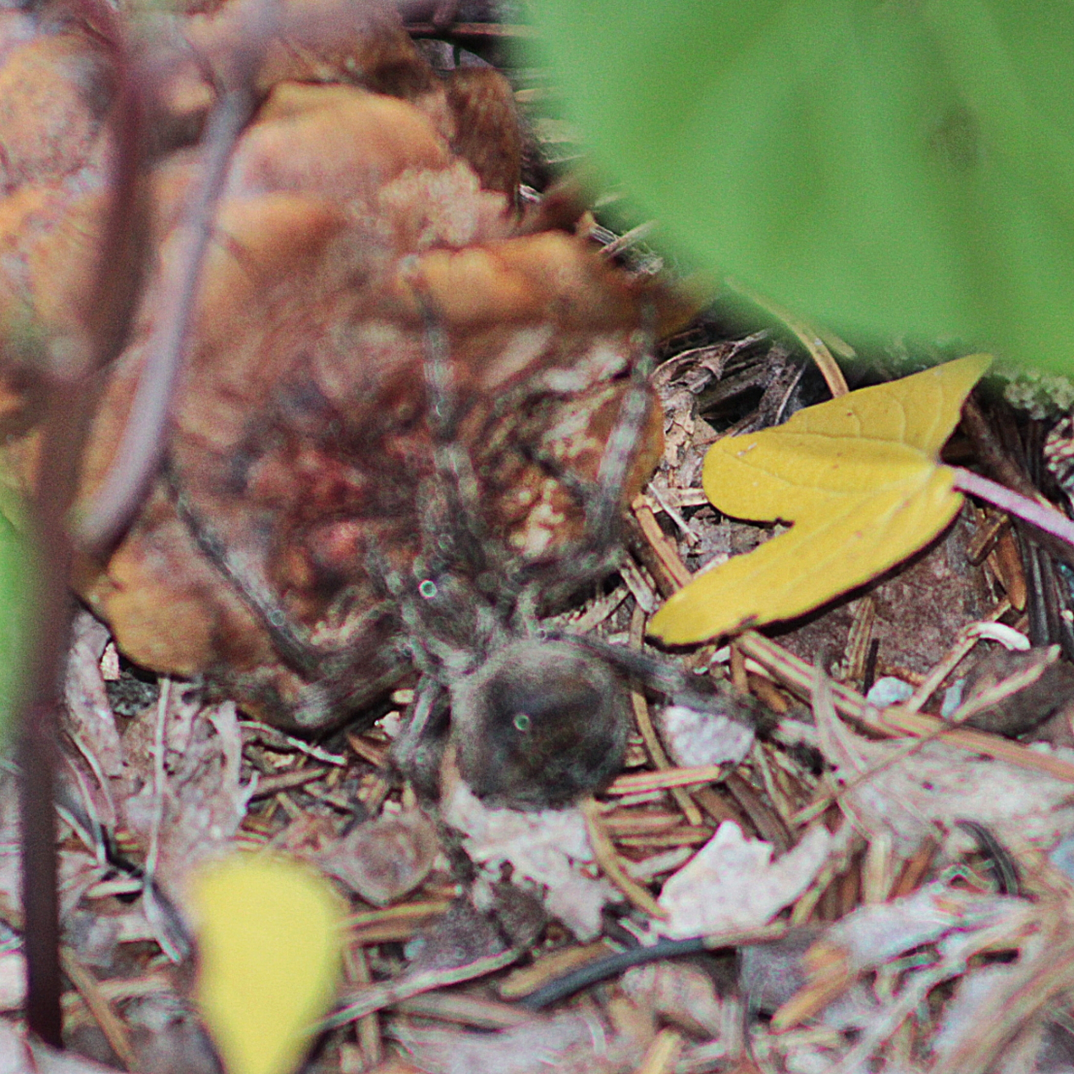 I couldn’t do anything to get better photos. I had to get Gus away from there and put a lot of distance between me and that thing. Gus was happy to be led up the stairs to go inside and eat. I had to send the photos from my camera to my phone. Then it got really funny. I had figure out how to open them in Pixlr to sharpen them and work the contrast to make the creature more visible while trying not to look at it. And then, I got to upload those photos to iNaturalist for identification. It’s been about a month and no one has been able to categorize the creature into a more narrow listing than “spiders.”