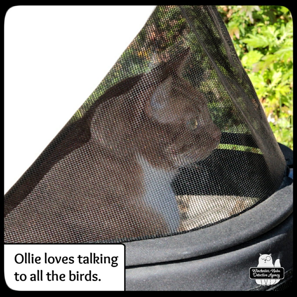 On this November day of our Third Year of our Apocalypse after the COVID-19 Outbreak, it was warm. I was outside with Gus, our sometimes fearless private detective. We had made the rounds to feed birds and were ready to move on to the next phase of patrolling. Gus kept looking for chipmunks even though they’ve been hibernating since mid-October. I think he was remembering his last interaction with one which took place on Oliver’s patio. That’s for another case file. While Gus was thinking back to that day, it gave him the urge to go back to the patio.