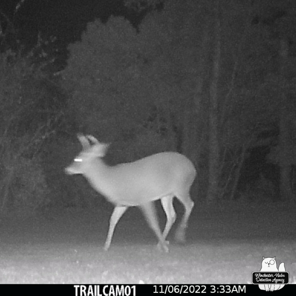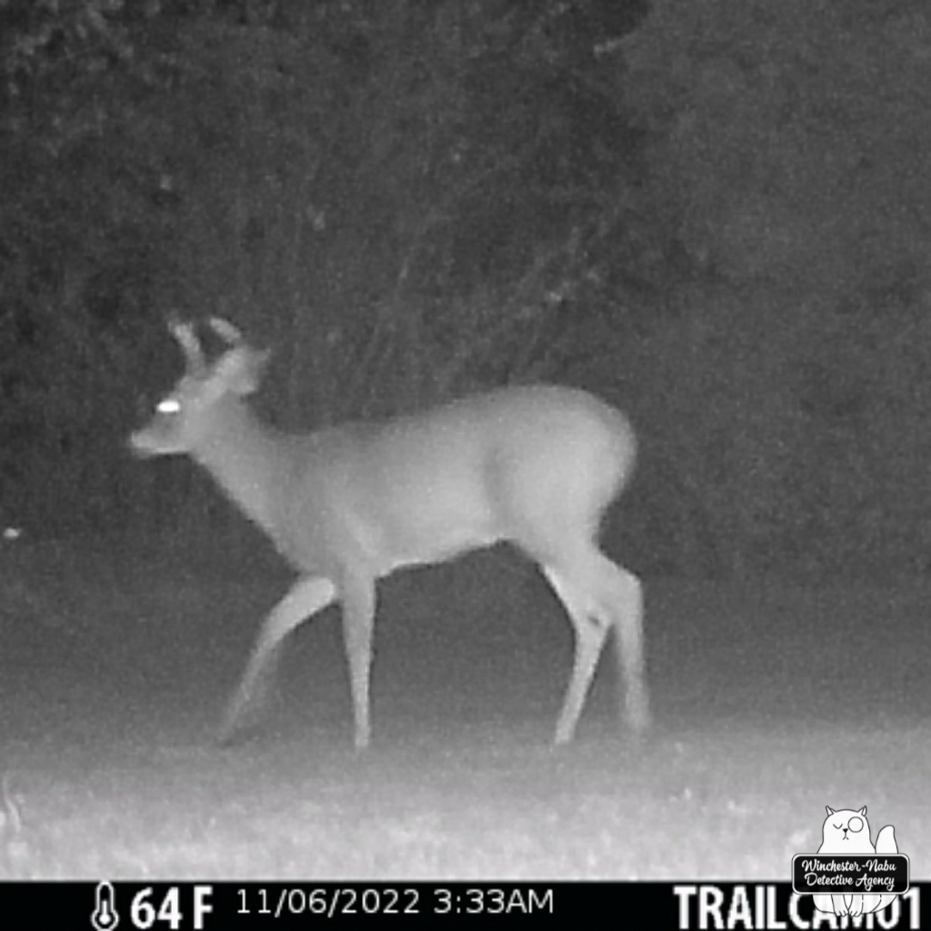 Having this trail camera has paid off. We’ve gotten images of all sorts of magnificent creatures plus some trespassing stray cats who don’t belong here. In this case file, we present one of the wildest mysteries we’ve ever had!