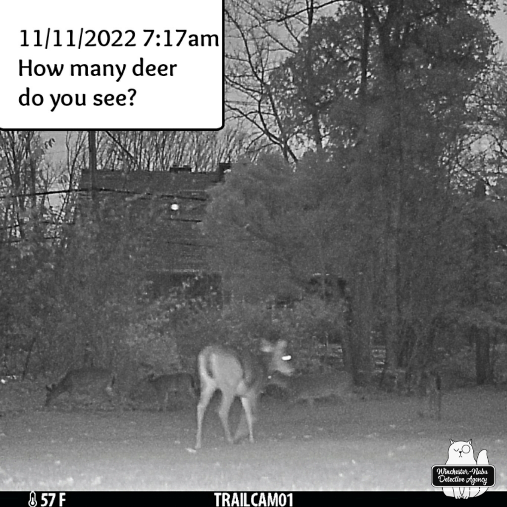 If you peruse these photos, most of them have enough sharpness to figure out that we have had a lot of white-tailed deer and Jersey devil-deer. These are all shown with the fancy filter we invented to show the magical characteristics of the hybrid animals.