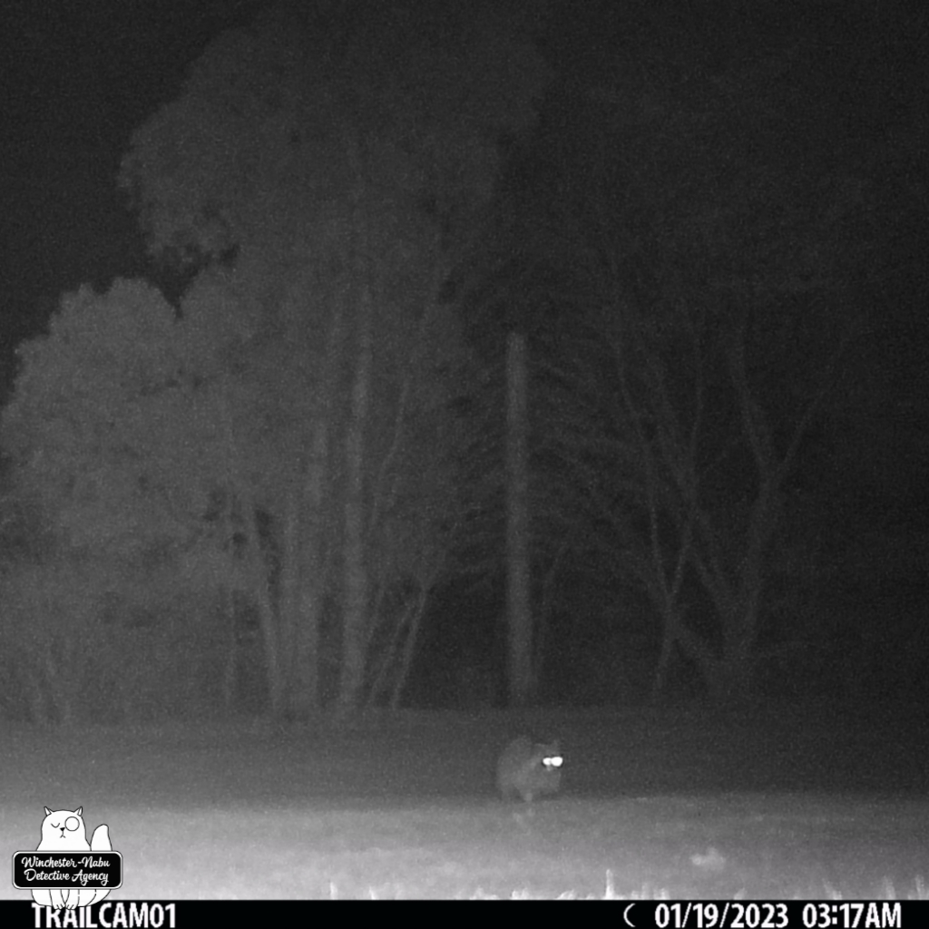 Then I saw the images of the creature who became our prime suspect: a fox or fox-creature like a kitsune! The foxes had one busy week in our backyard when they ran through for mating season purposes. It was prime opportunity to get great photos in those seconds it takes for them to prance by me, but did I get good photos? No! I snapped one and it’s terrible.